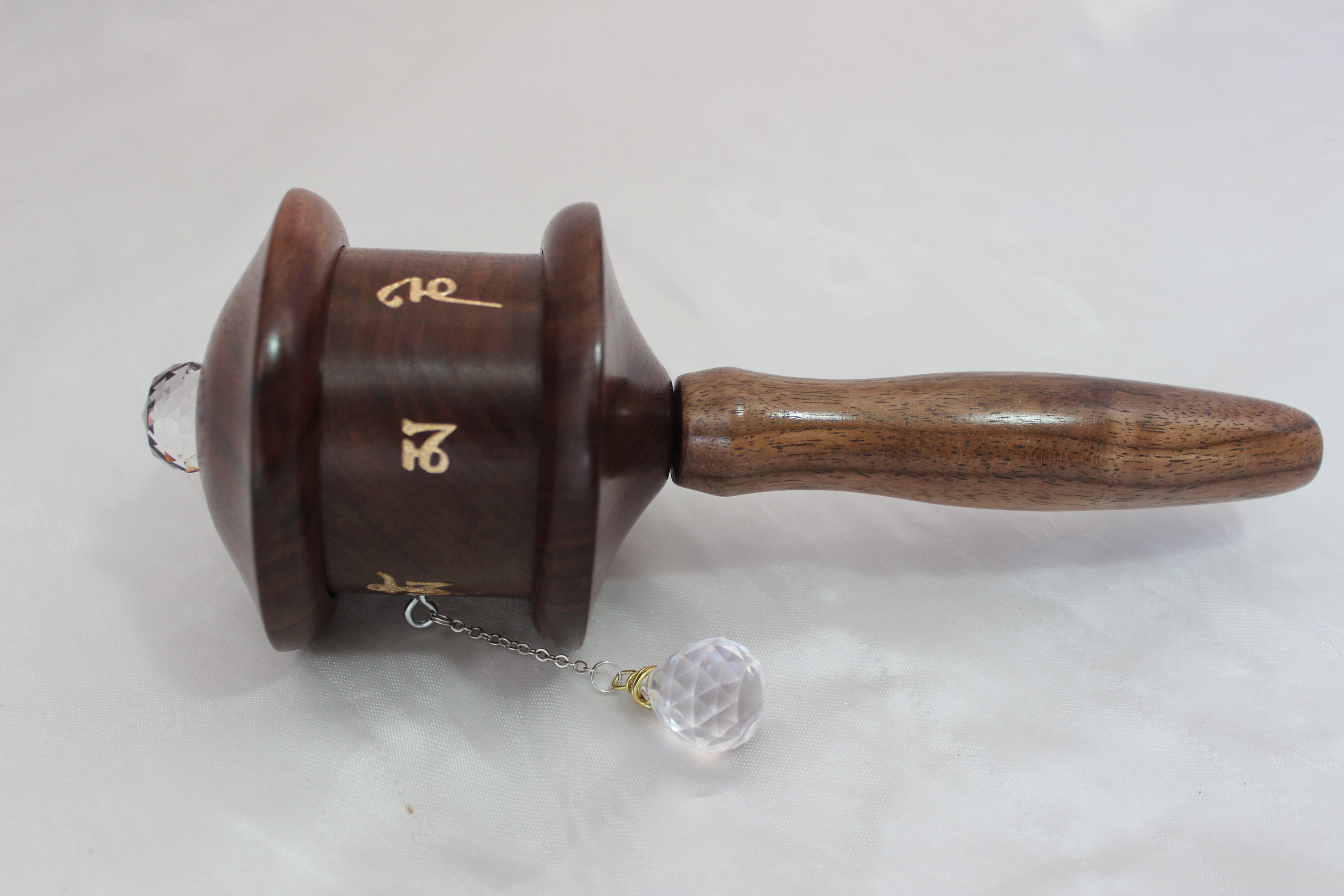 This standard size prayer wheel is made out of walnut hardwood, sustainably harvested in our home state of Oregon.