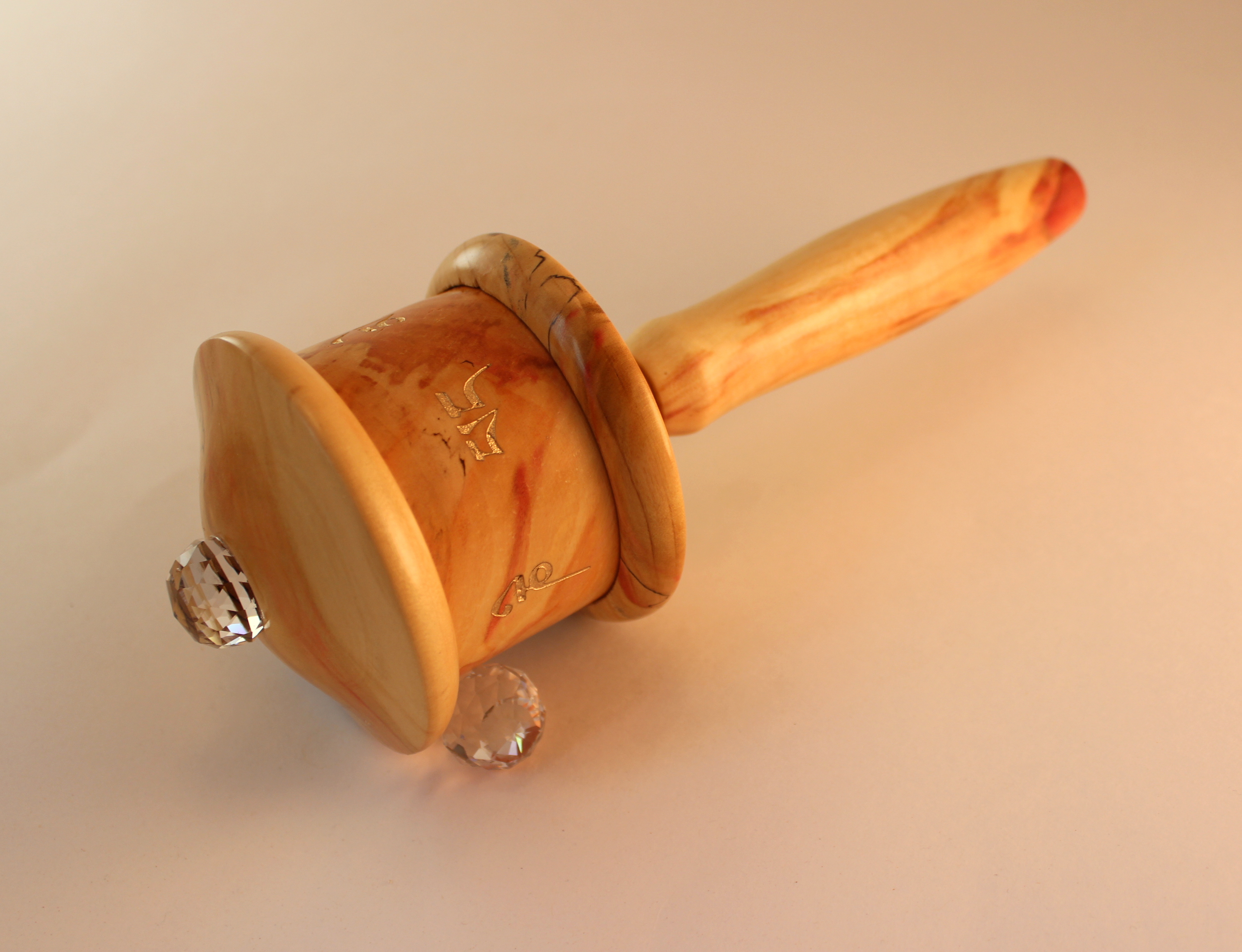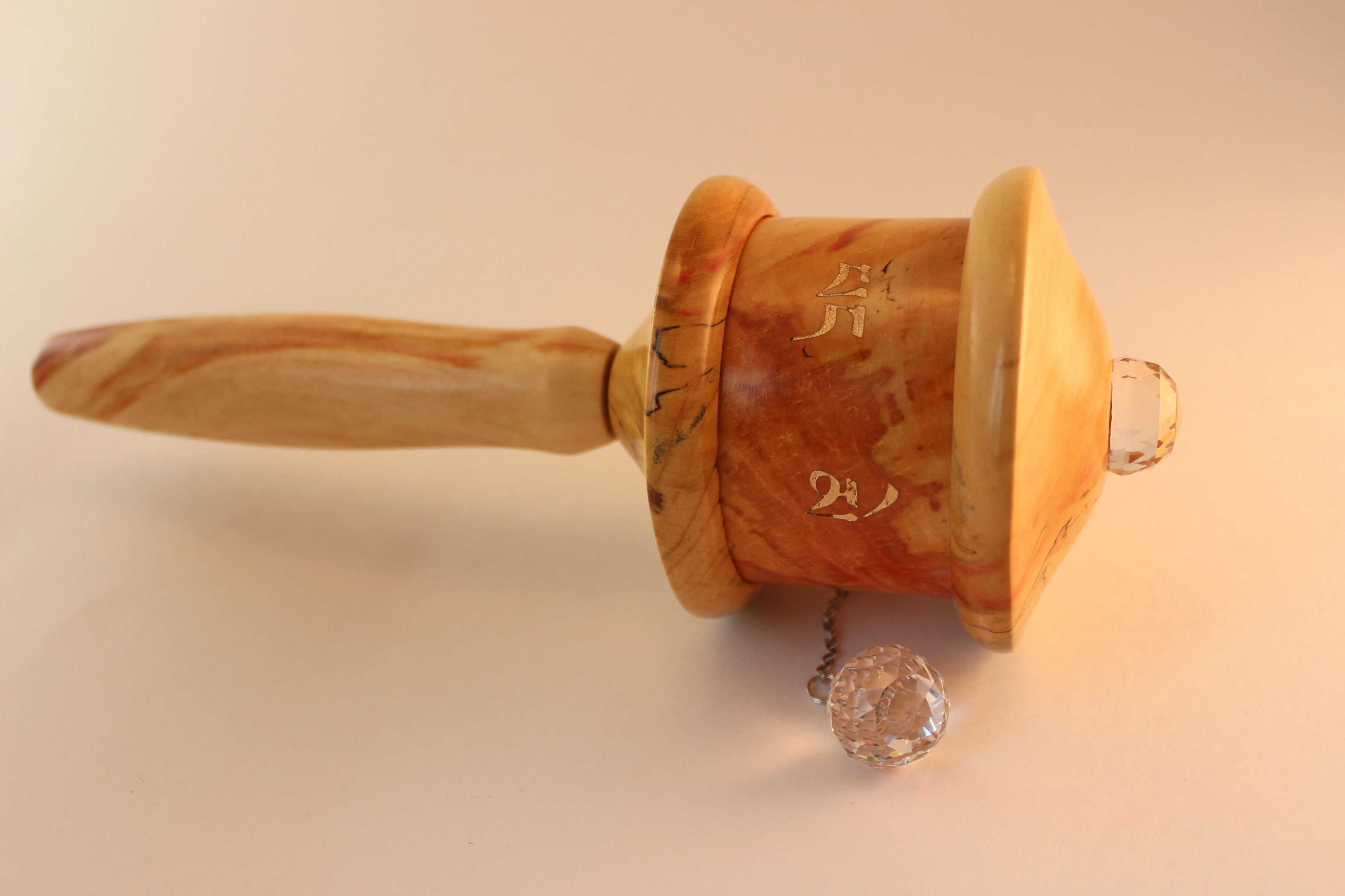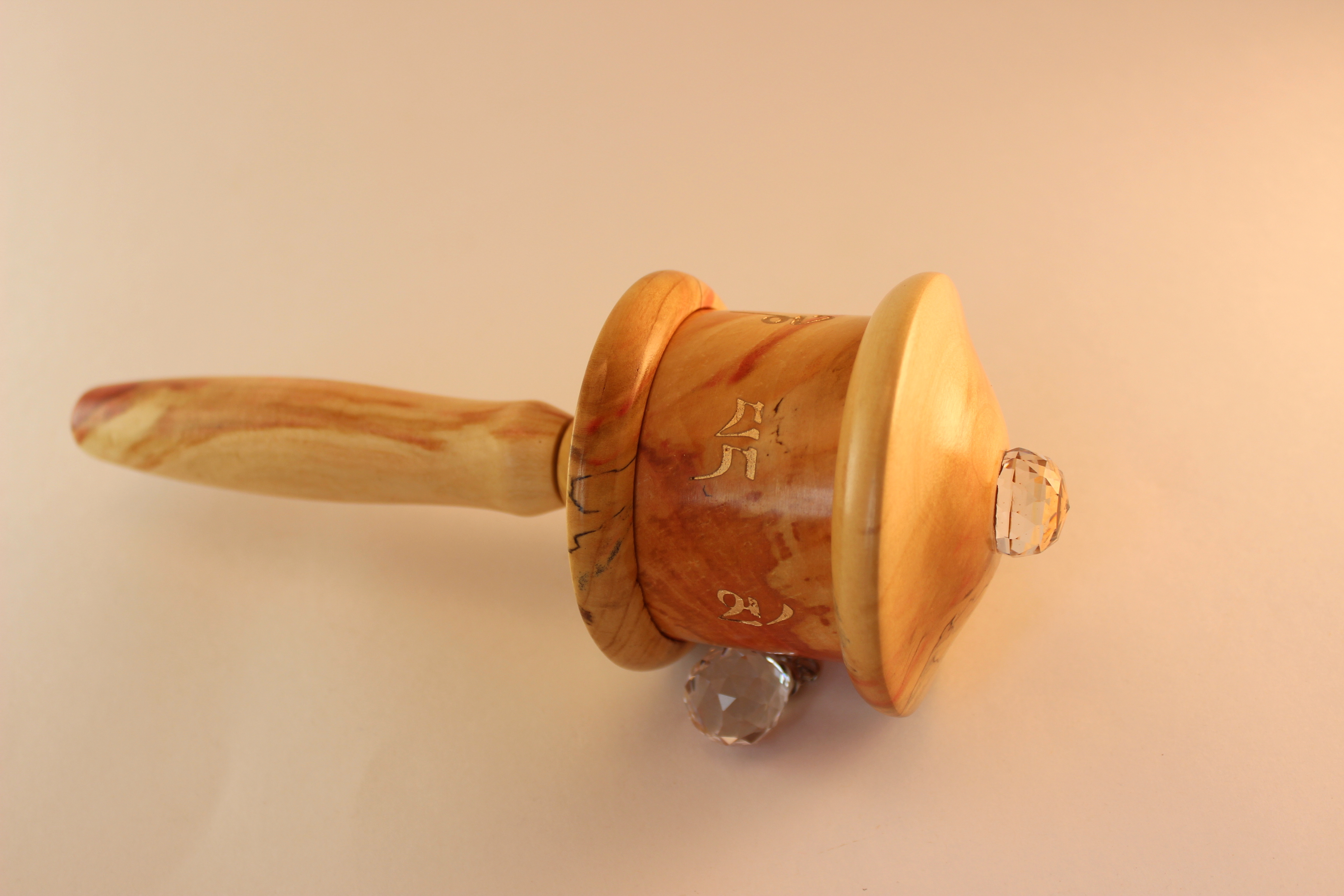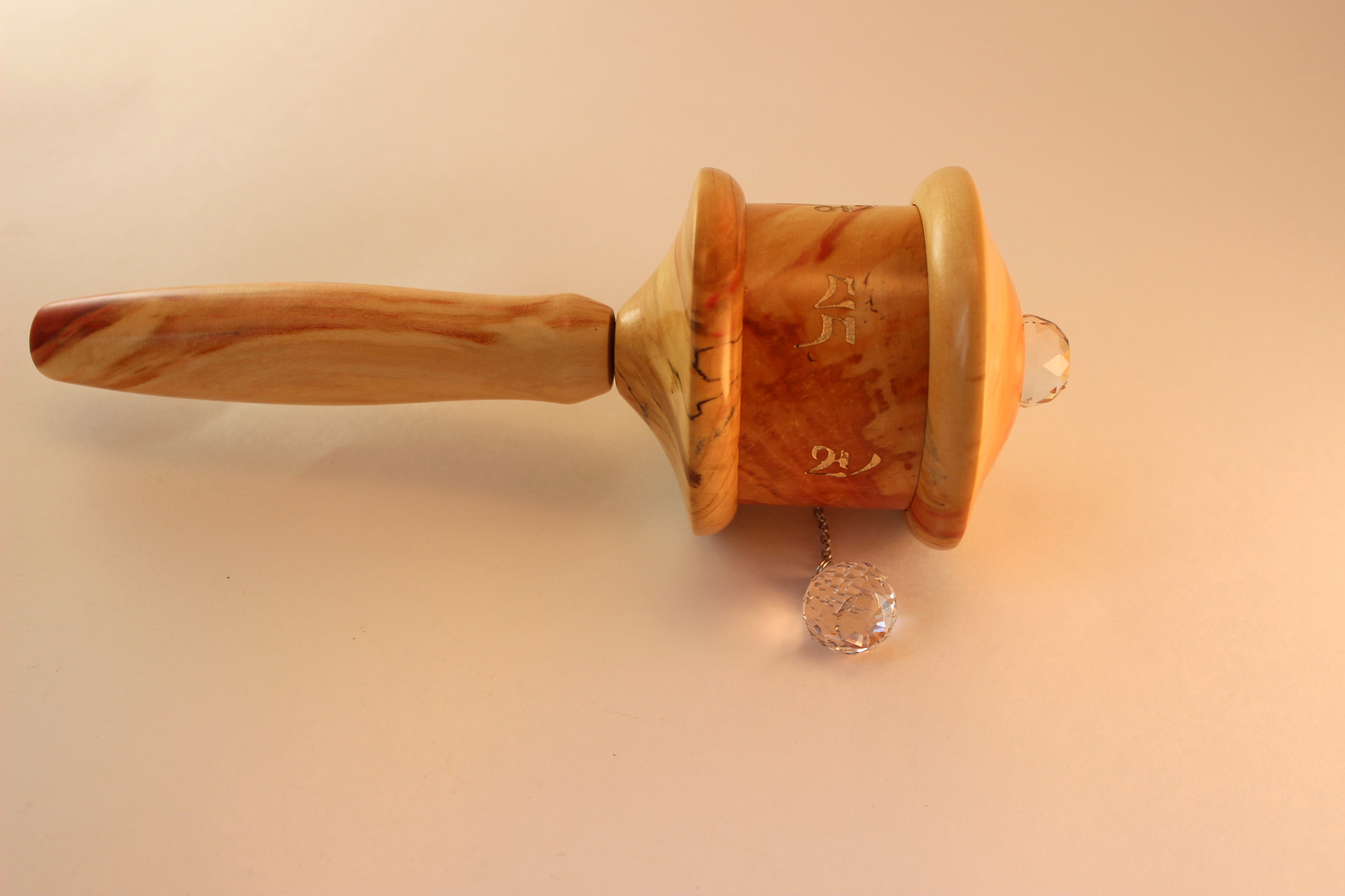 Flame Box Elder is a softer wood, so the prayer wheel is lighter and requires a little extra attention to protect from scratching; it is sturdy long lasting and radiantly beautiful.