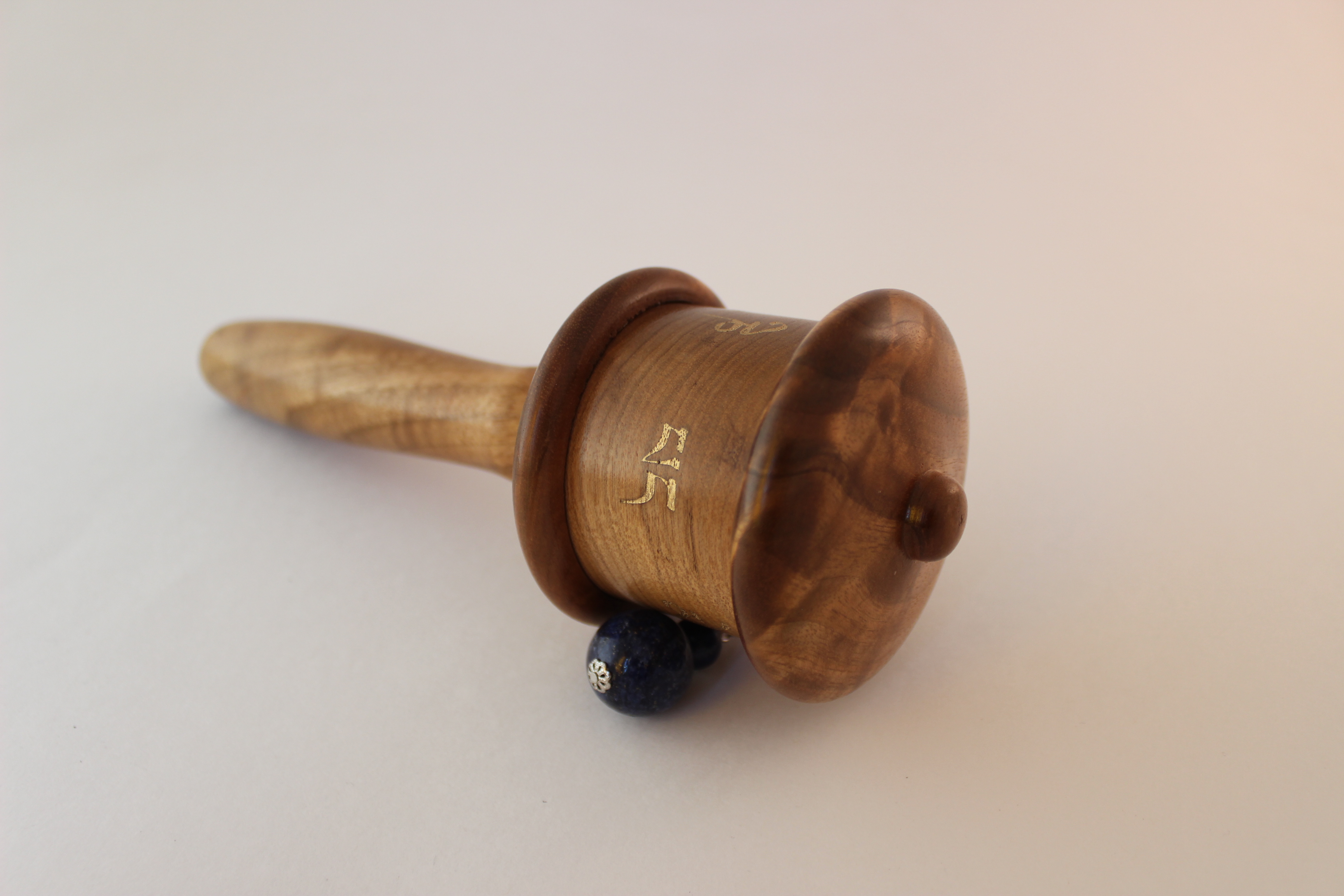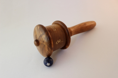 This is our mini size handheld prayer wheel. The mini is designed for portability and ease of use. It is perfect for people who take their prayer wheel everywhere with them, people with small hands, children or people who like a light prayer wheel.