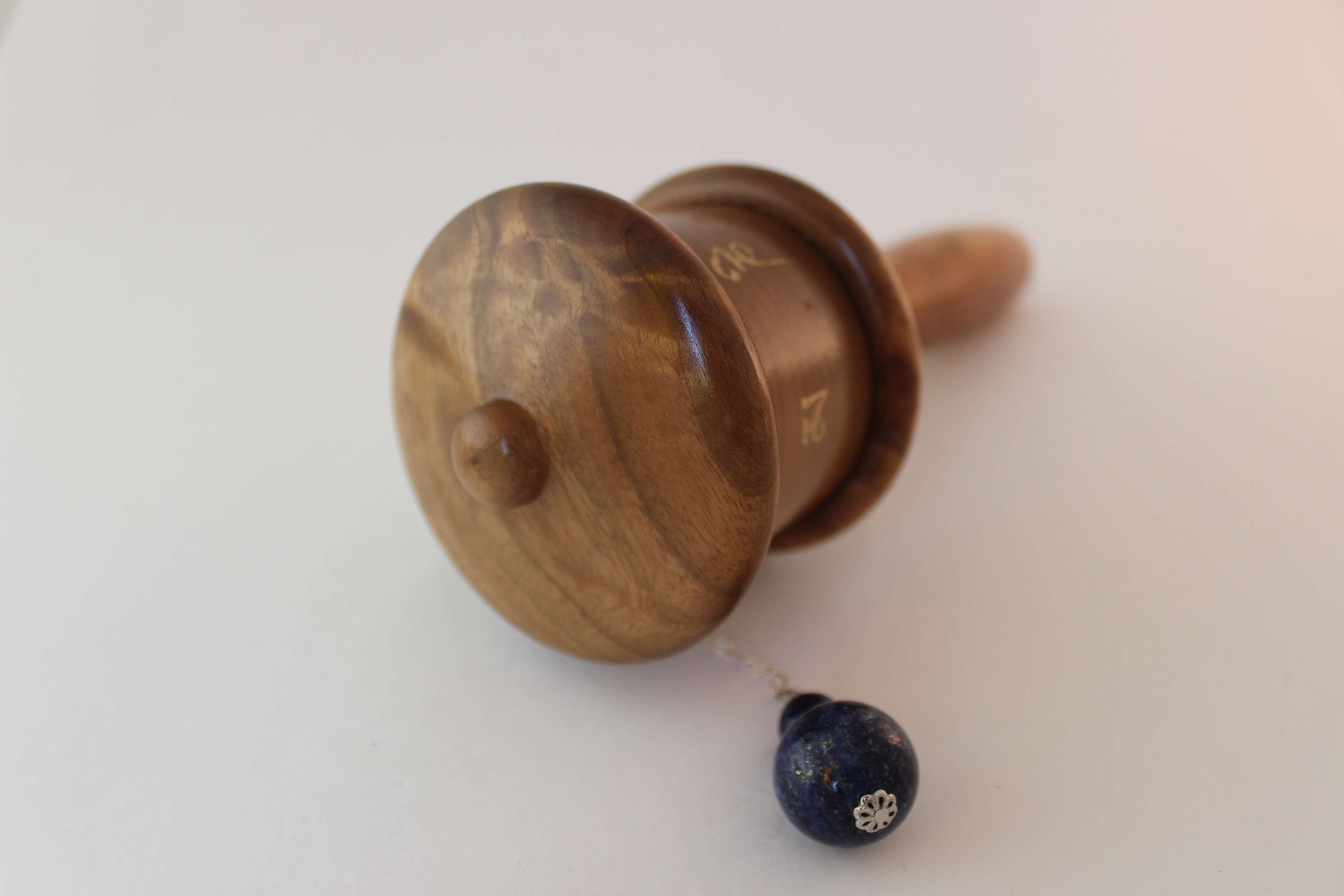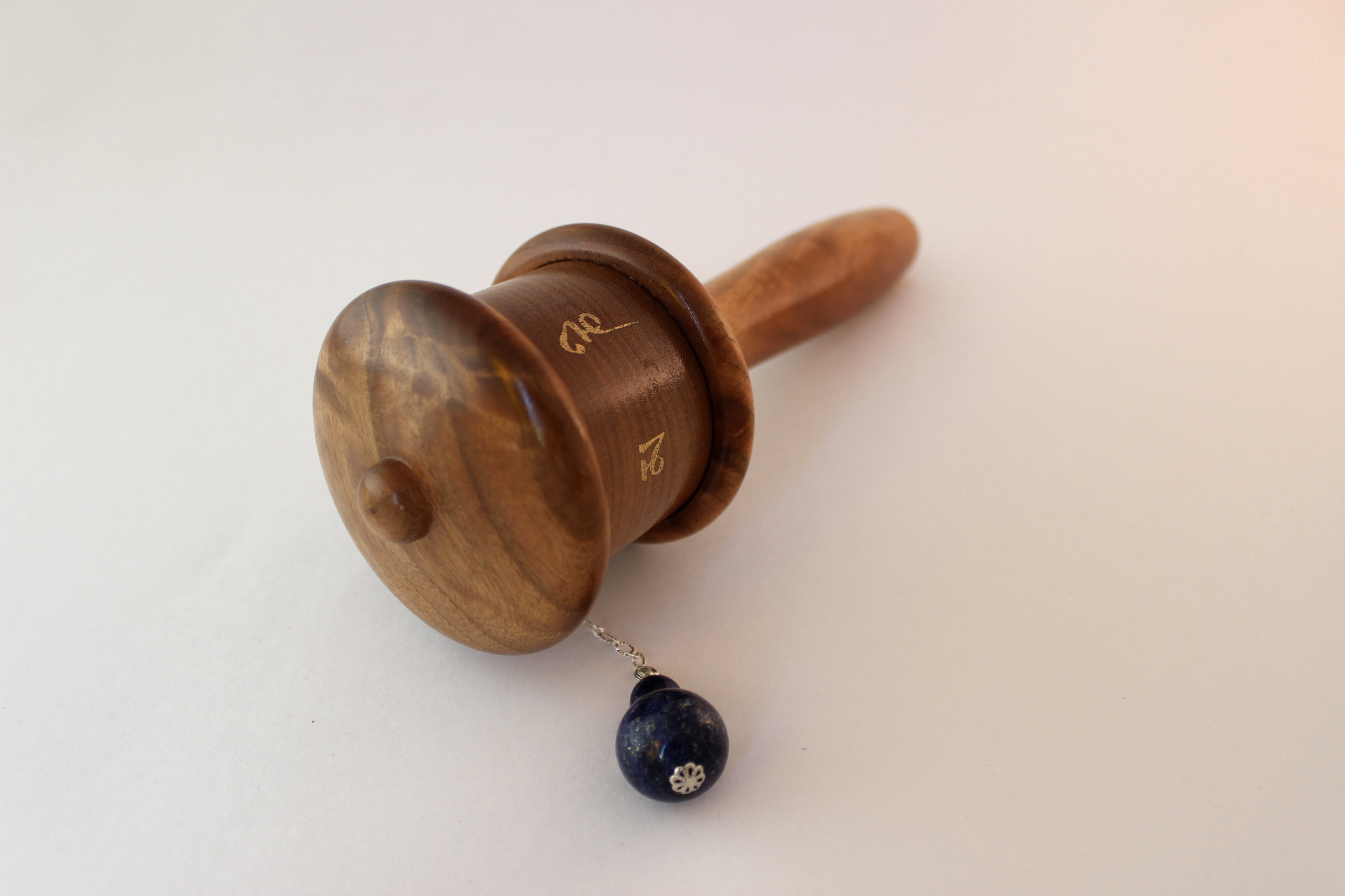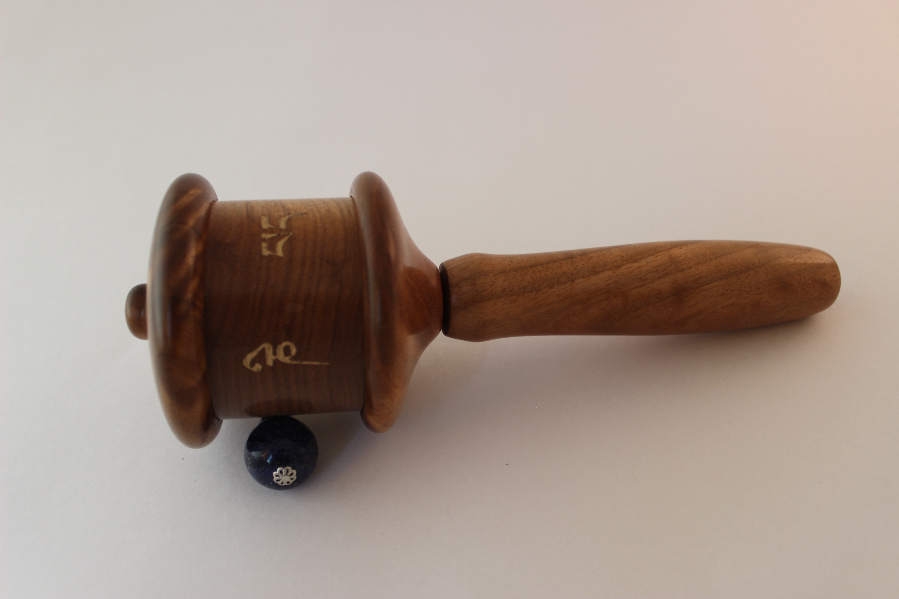 This prayer wheel made out of butternut wood sustainably harvested in our home state of Oregon.