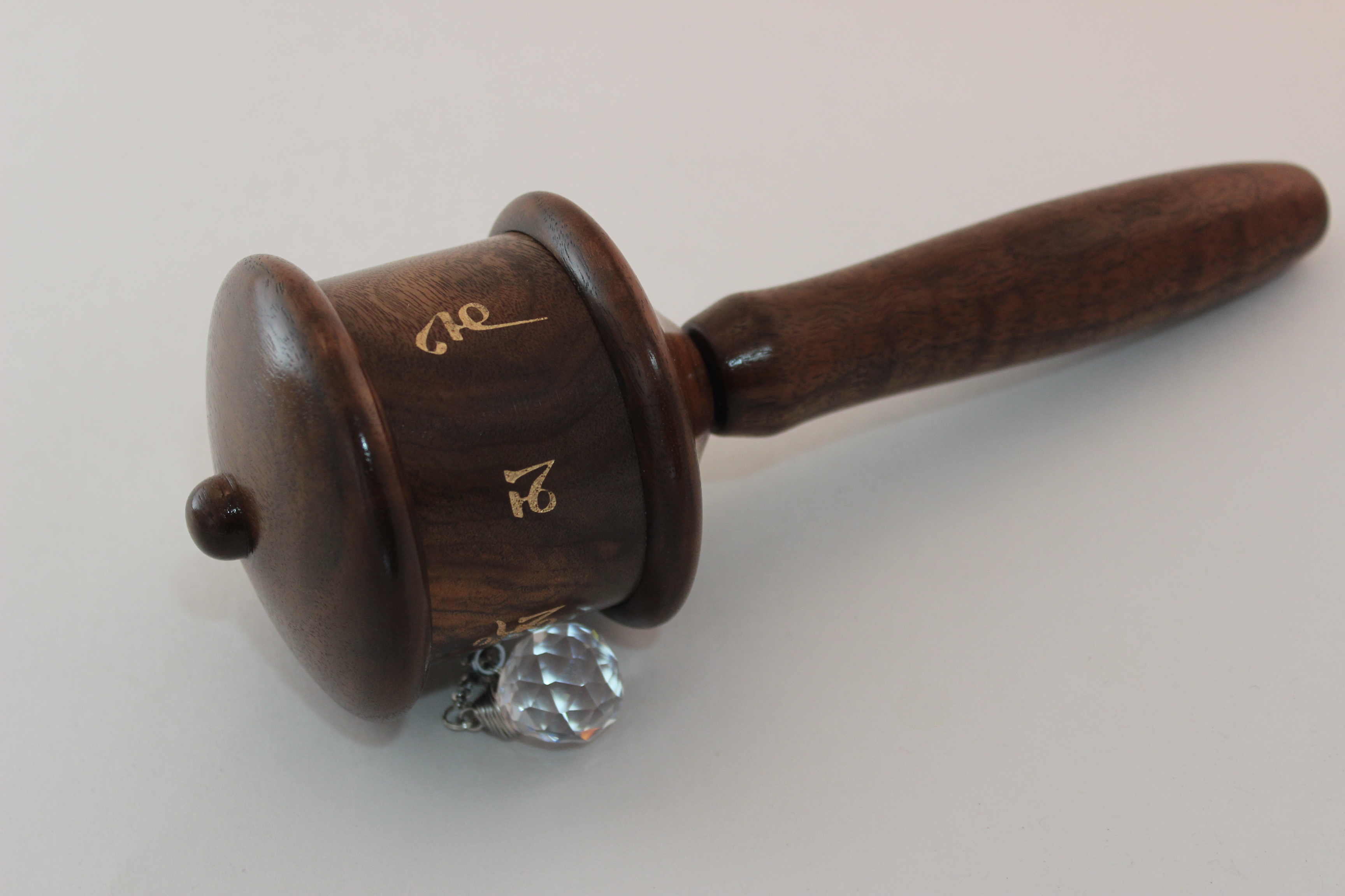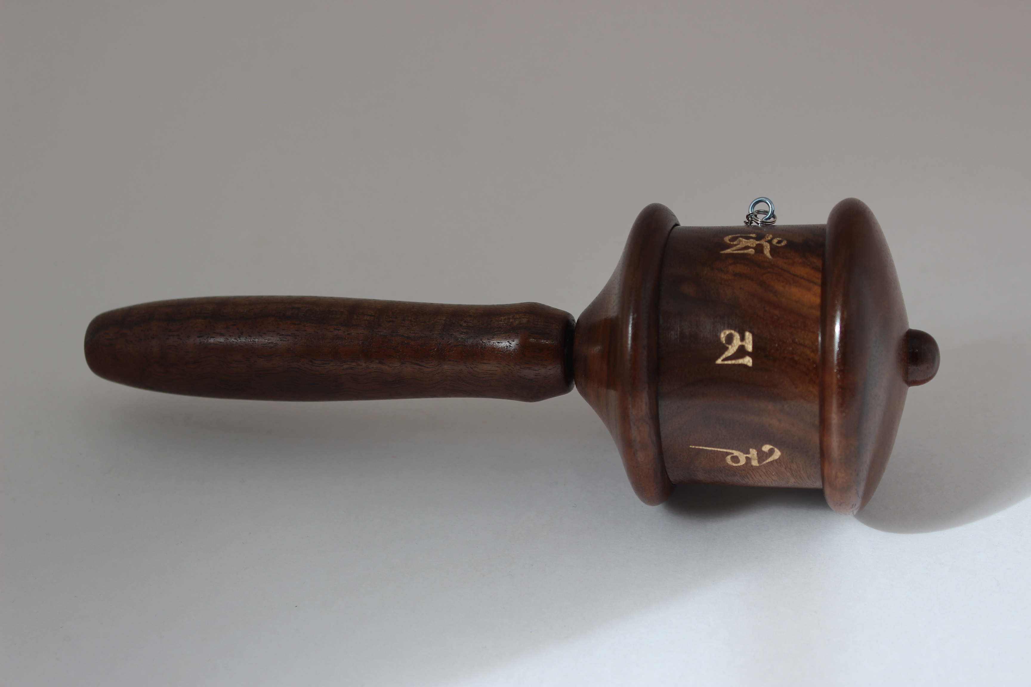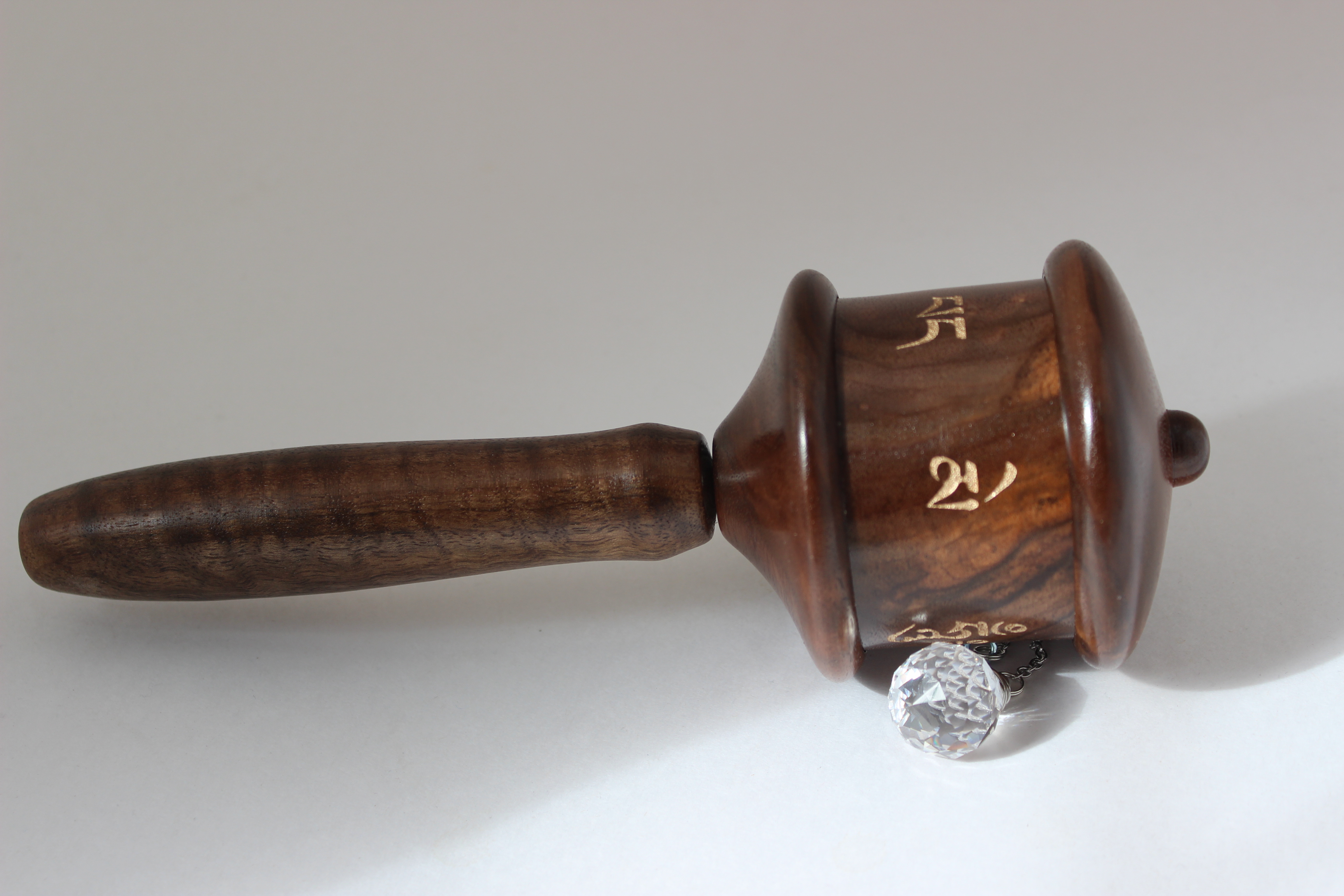 This standard size prayer wheel is made out of beautifully colored walnut wood, sustainably harvested in our home state of Oregon.
