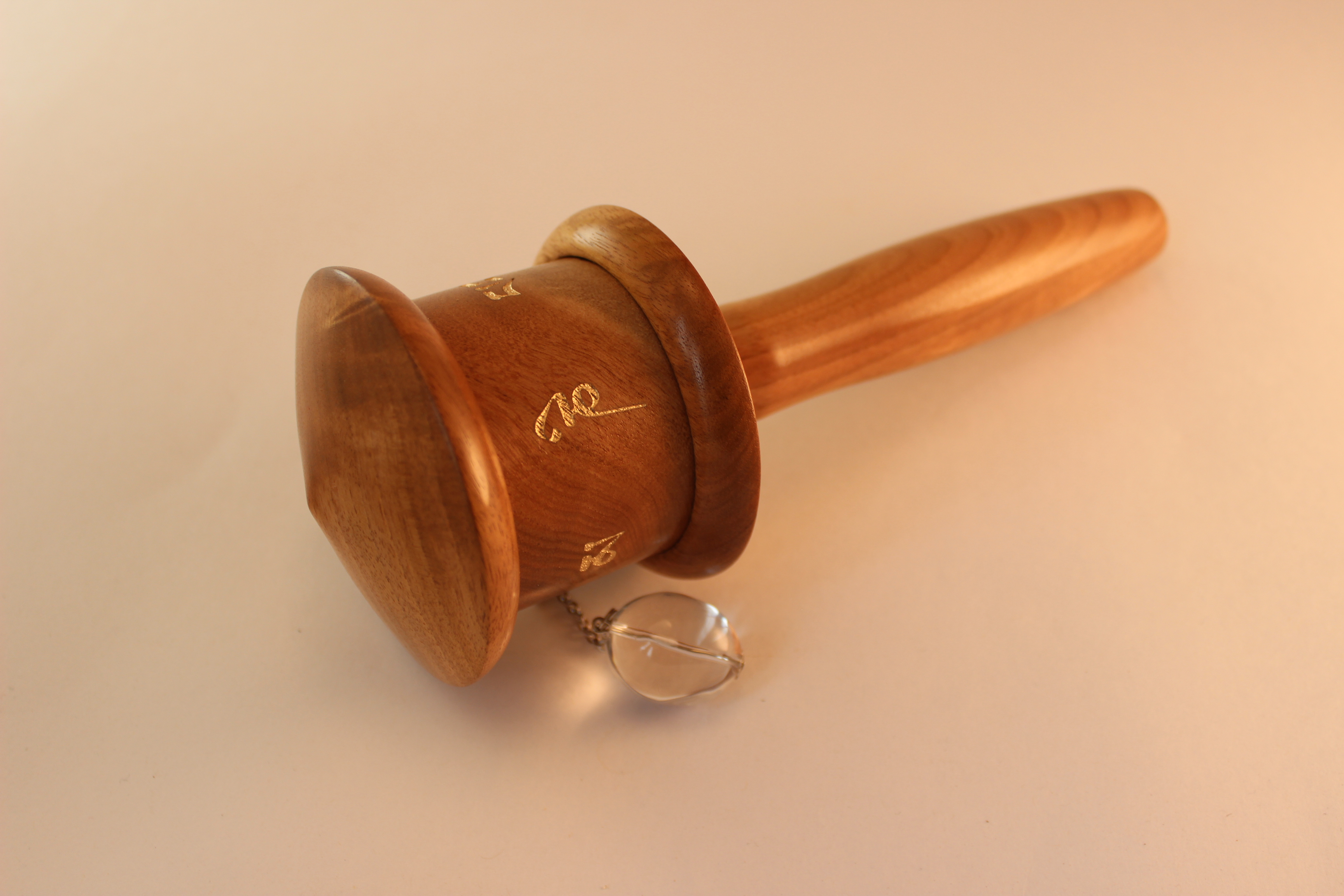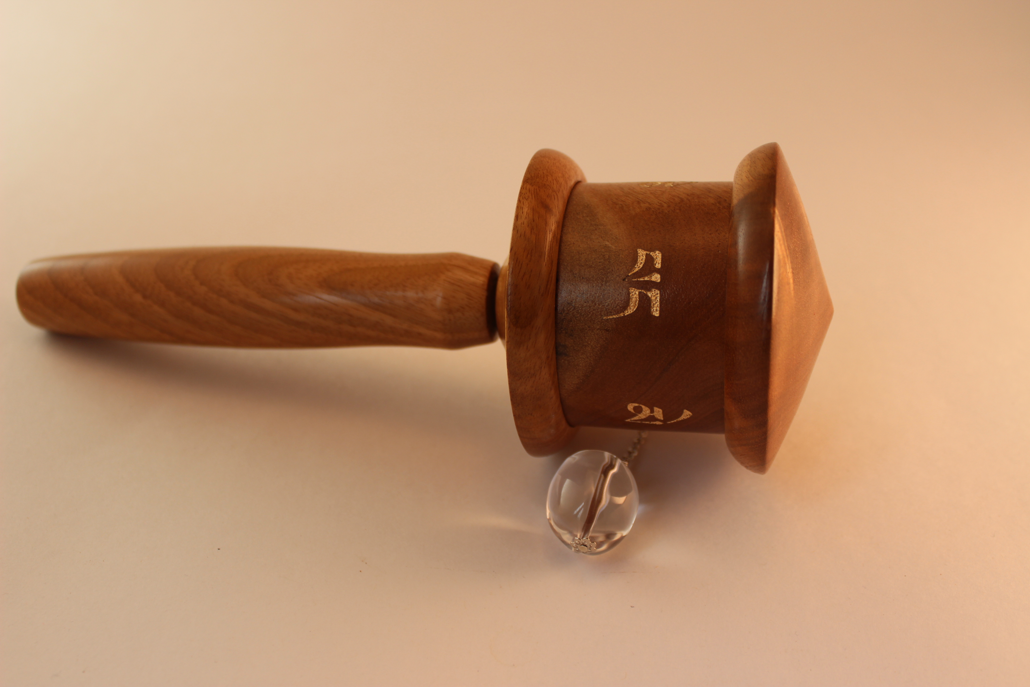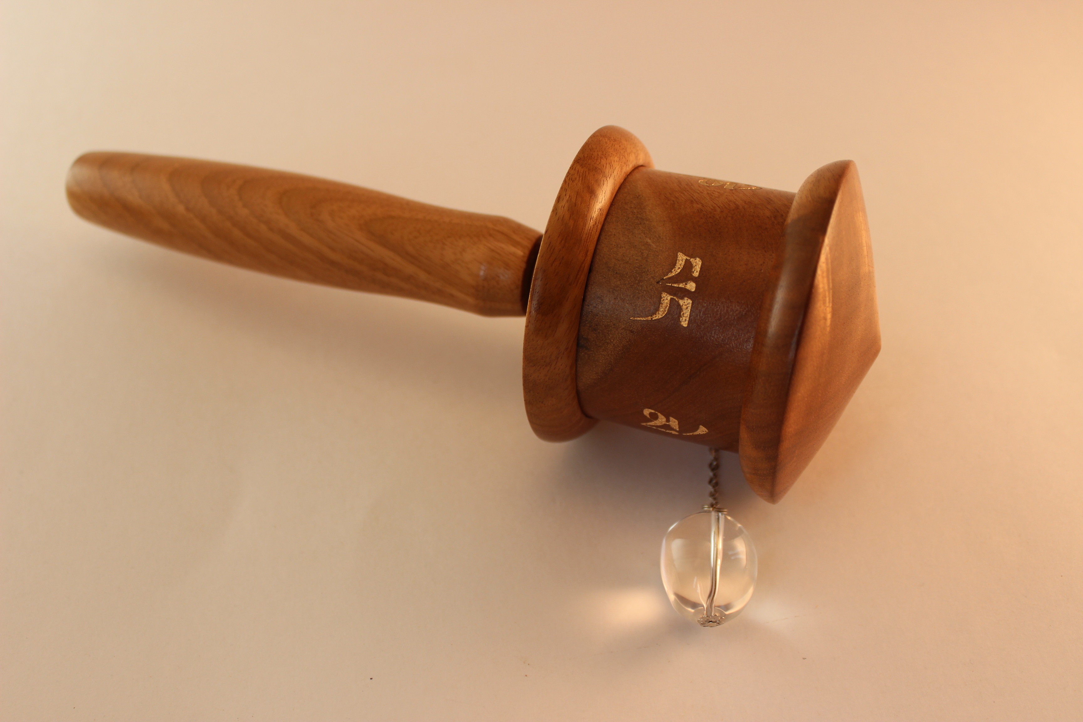 This prayer wheel made out of butternut wood sustainably harvested in our home state of Oregon.