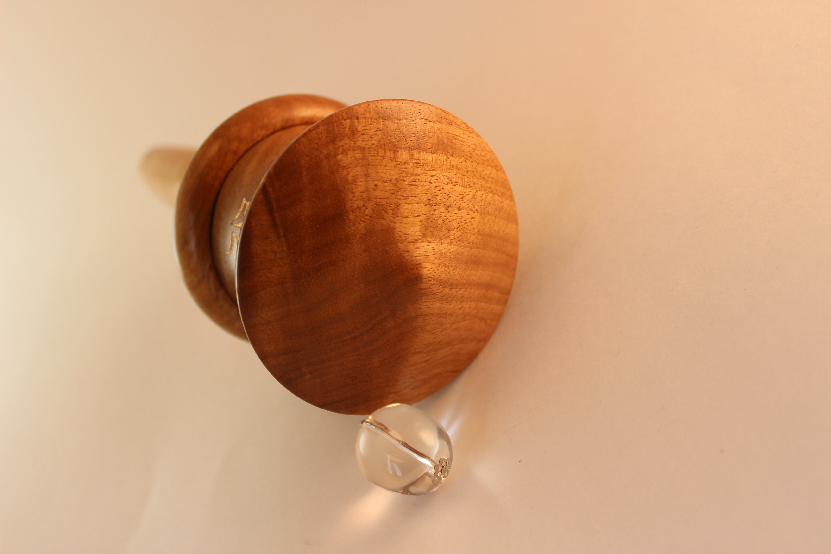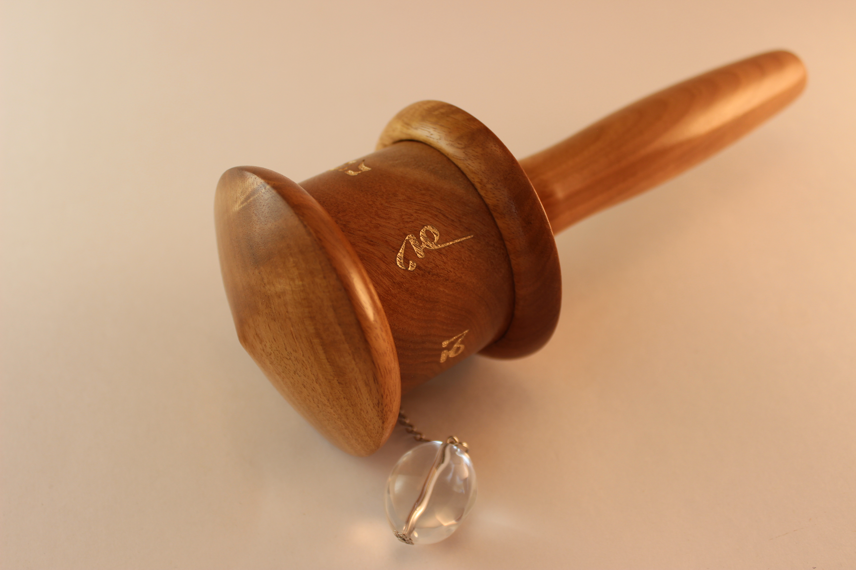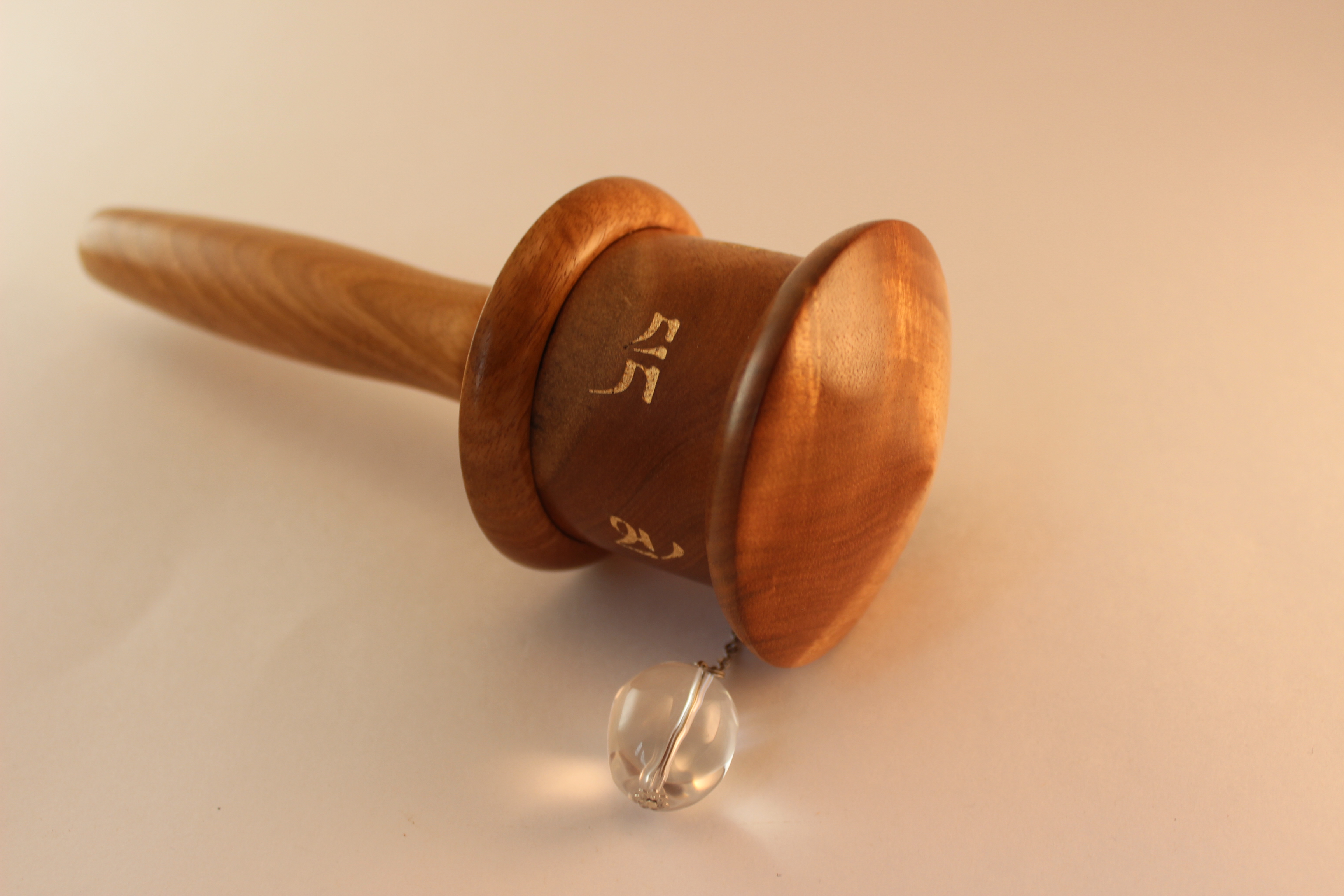 This prayer wheel made out of butternut wood sustainably harvested in our home state of Oregon.