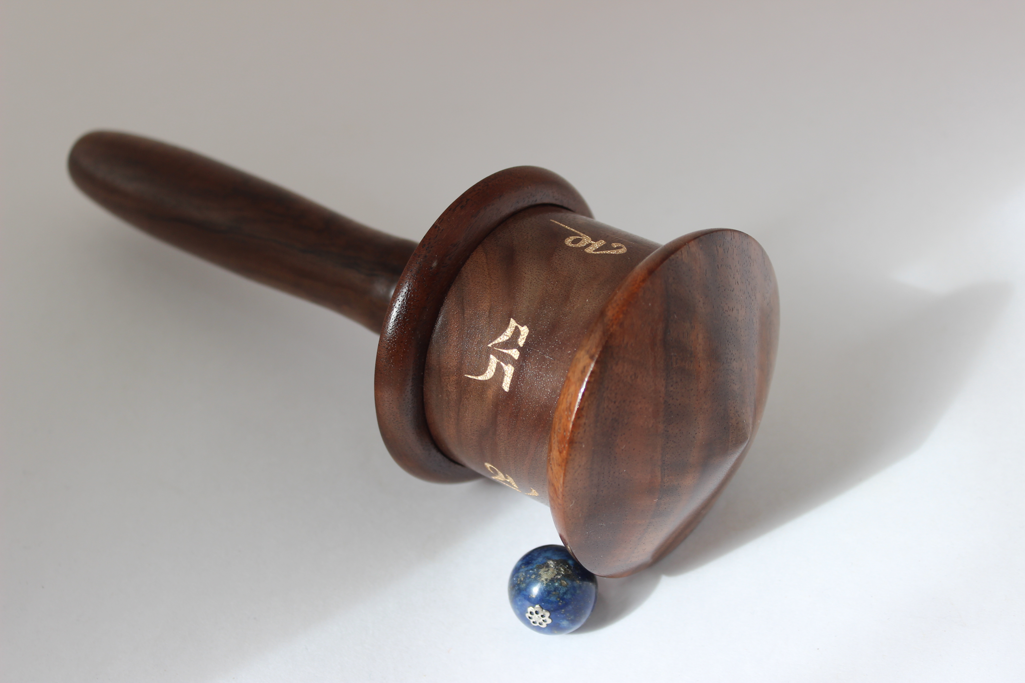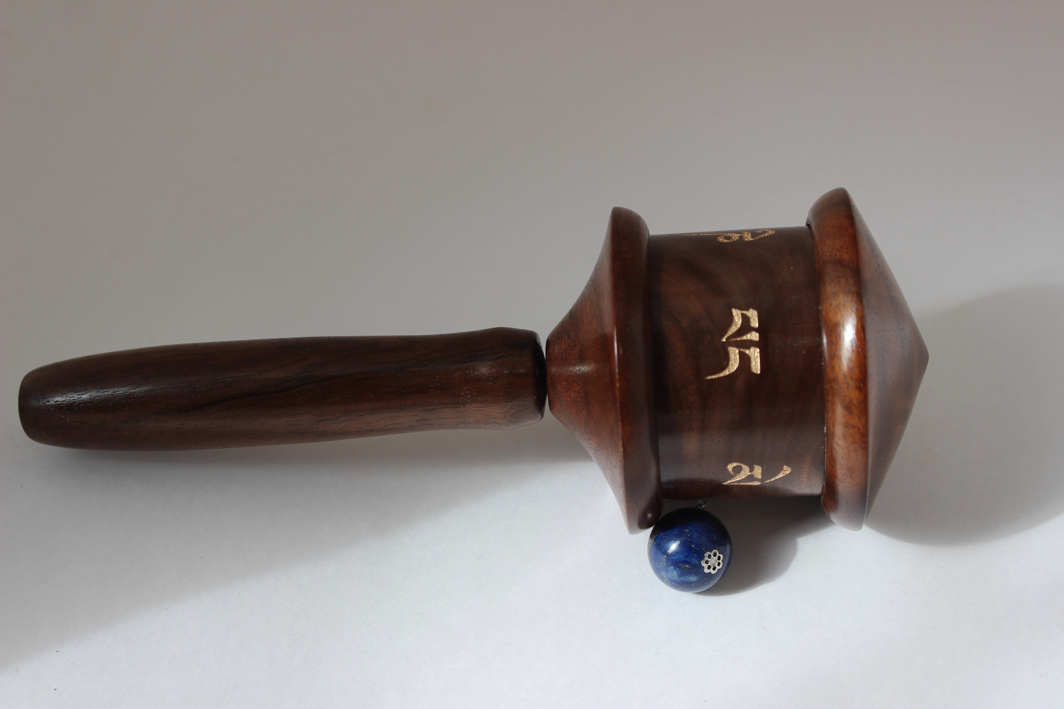 This standard size prayer wheel is made out of beautifully colored walnut wood, sustainably harvested in our home state of Oregon.