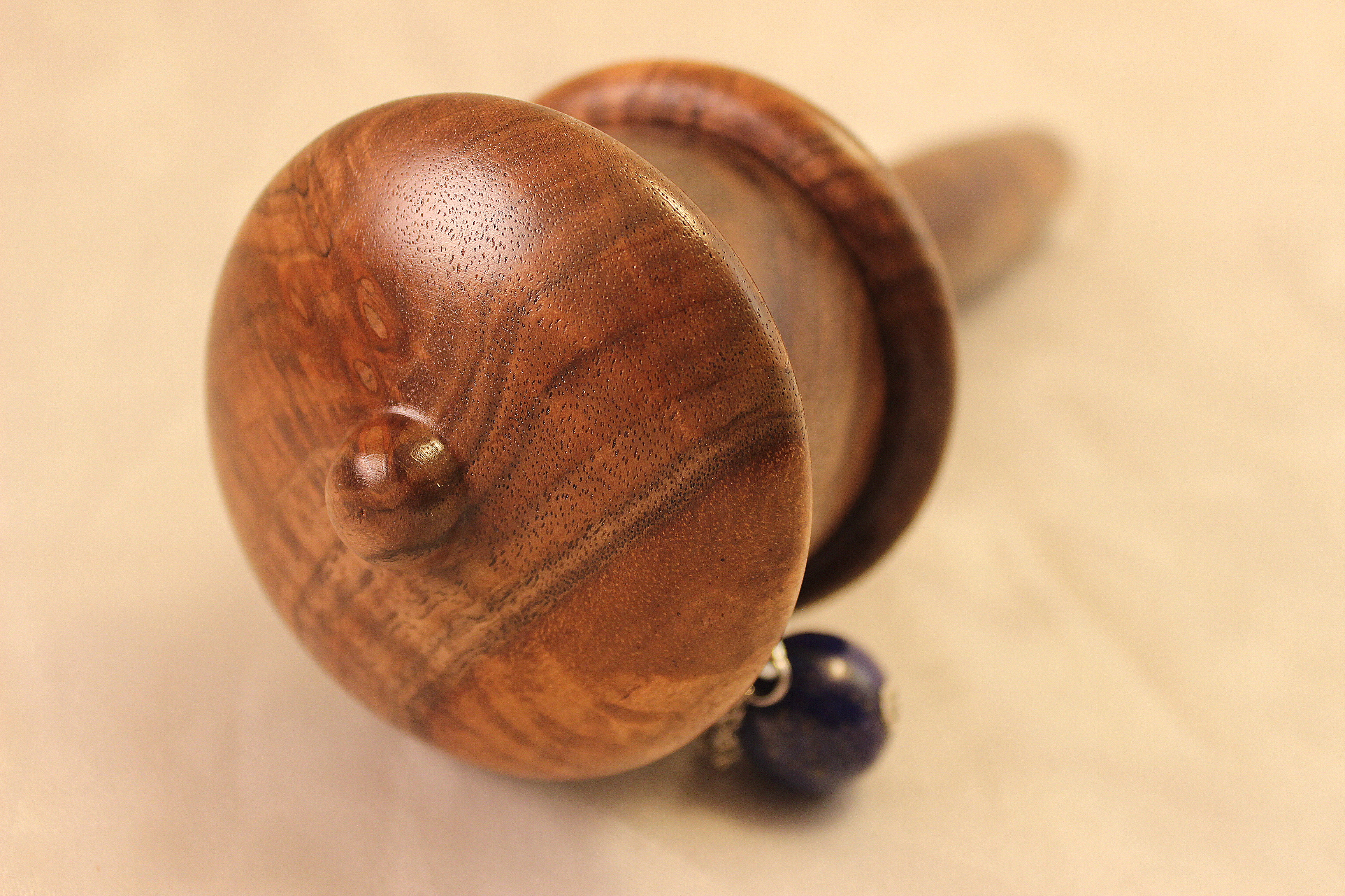 It spins effortlessly on high quality lifetime ball bearings using a lapis spinner attached with a sturdy yet elegant chain. The top design is a Tara’s Nipple Top, especially designed by our teacher Garchen Rinpoche, who says: “The nipple reminds of our mothers. The nipple is Tara”.