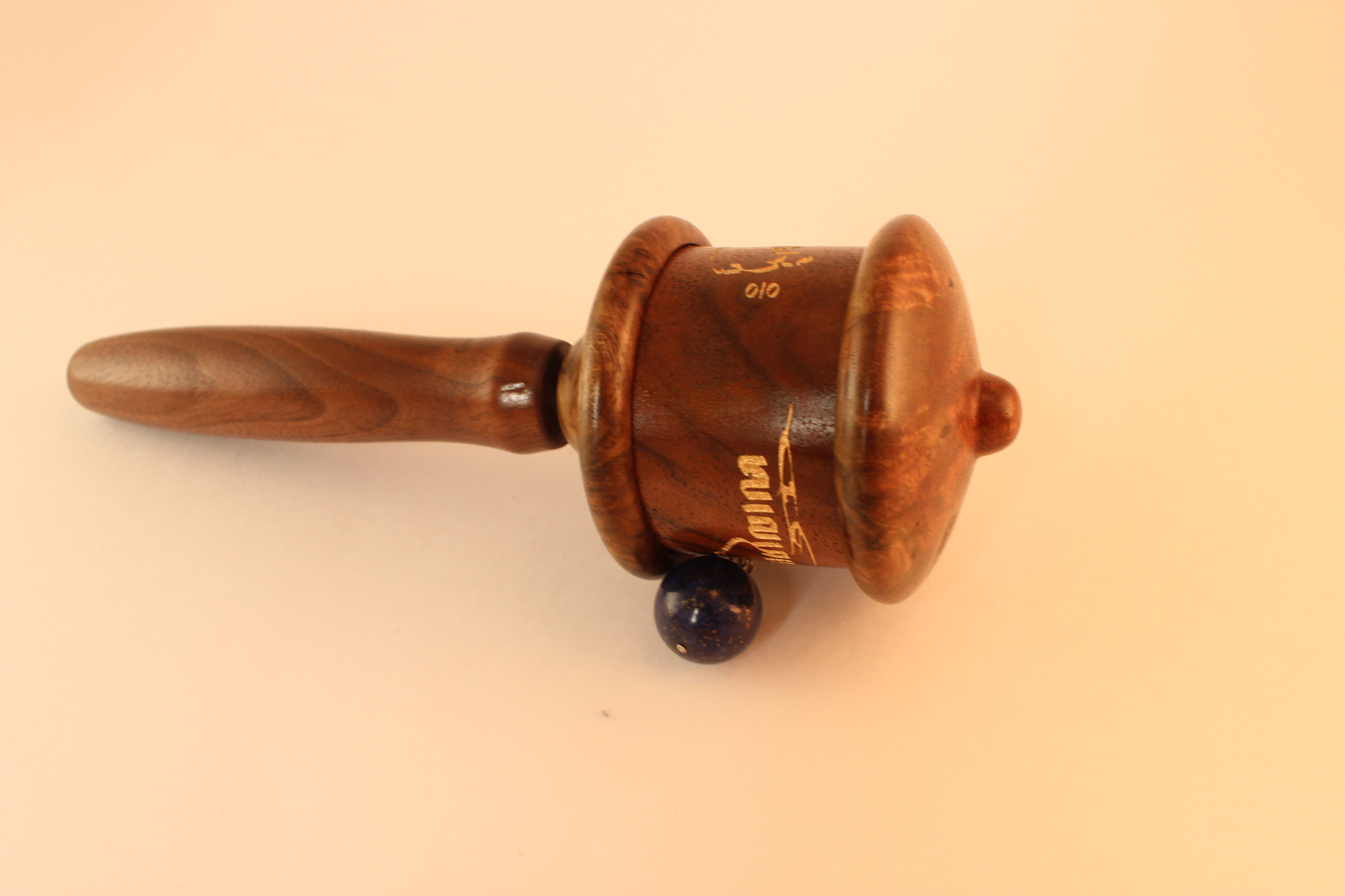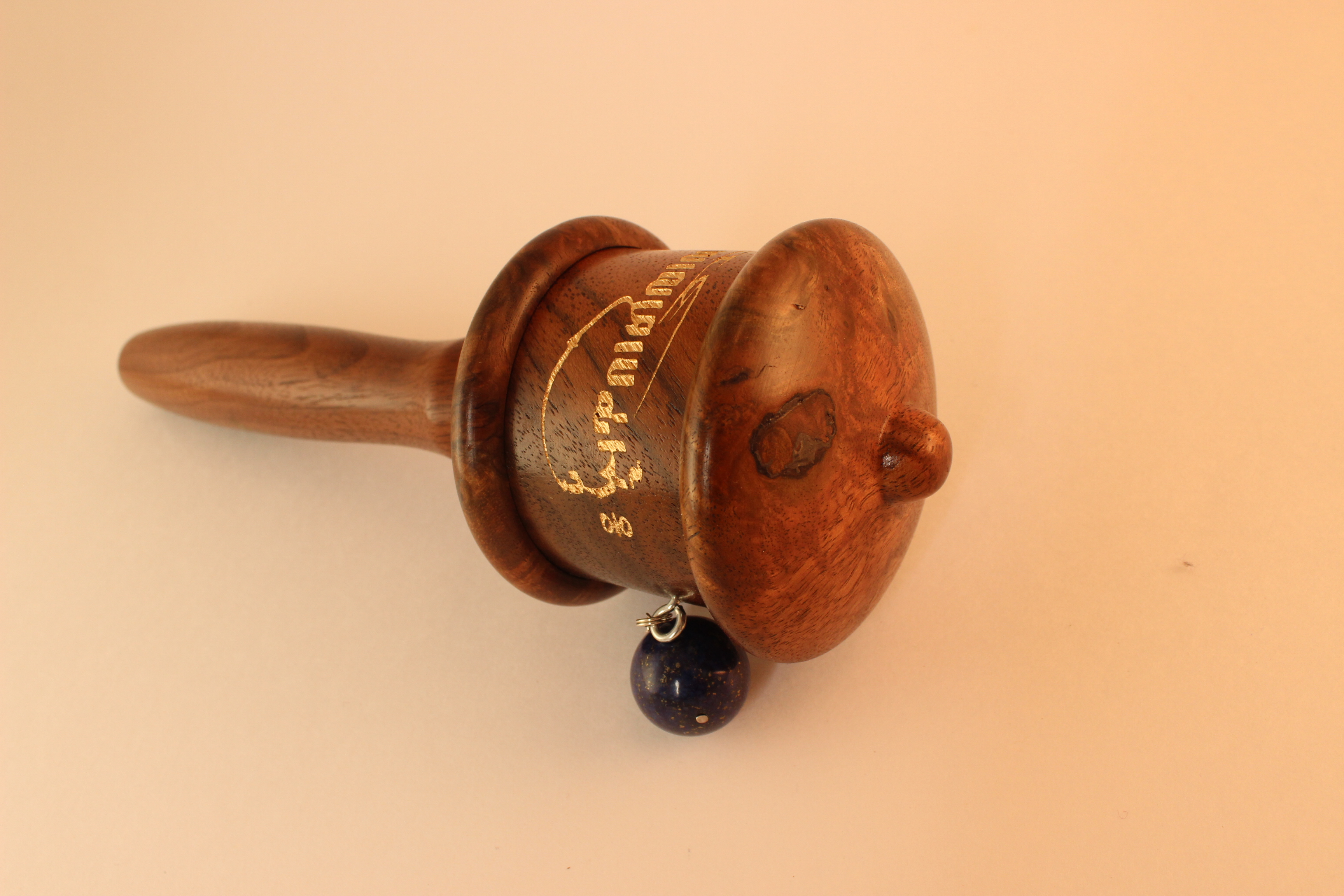 The top is “Tara’s nipple” This shape was designed through a process with our teacher H.E. Garchen Rinpoche during several years of back and forth prayer wheel designs we made for him. As he said it: “The nipple on top reminds us of our mother’s, the nipple is Tara.”