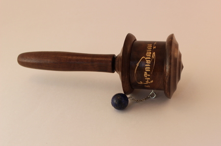 This is our mini size handheld prayer wheel. The mini is designed for portability and ease of use. It is perfect for people who take their prayer wheel everywhere with them, people with small hands, children or people who like a light prayer wheel.