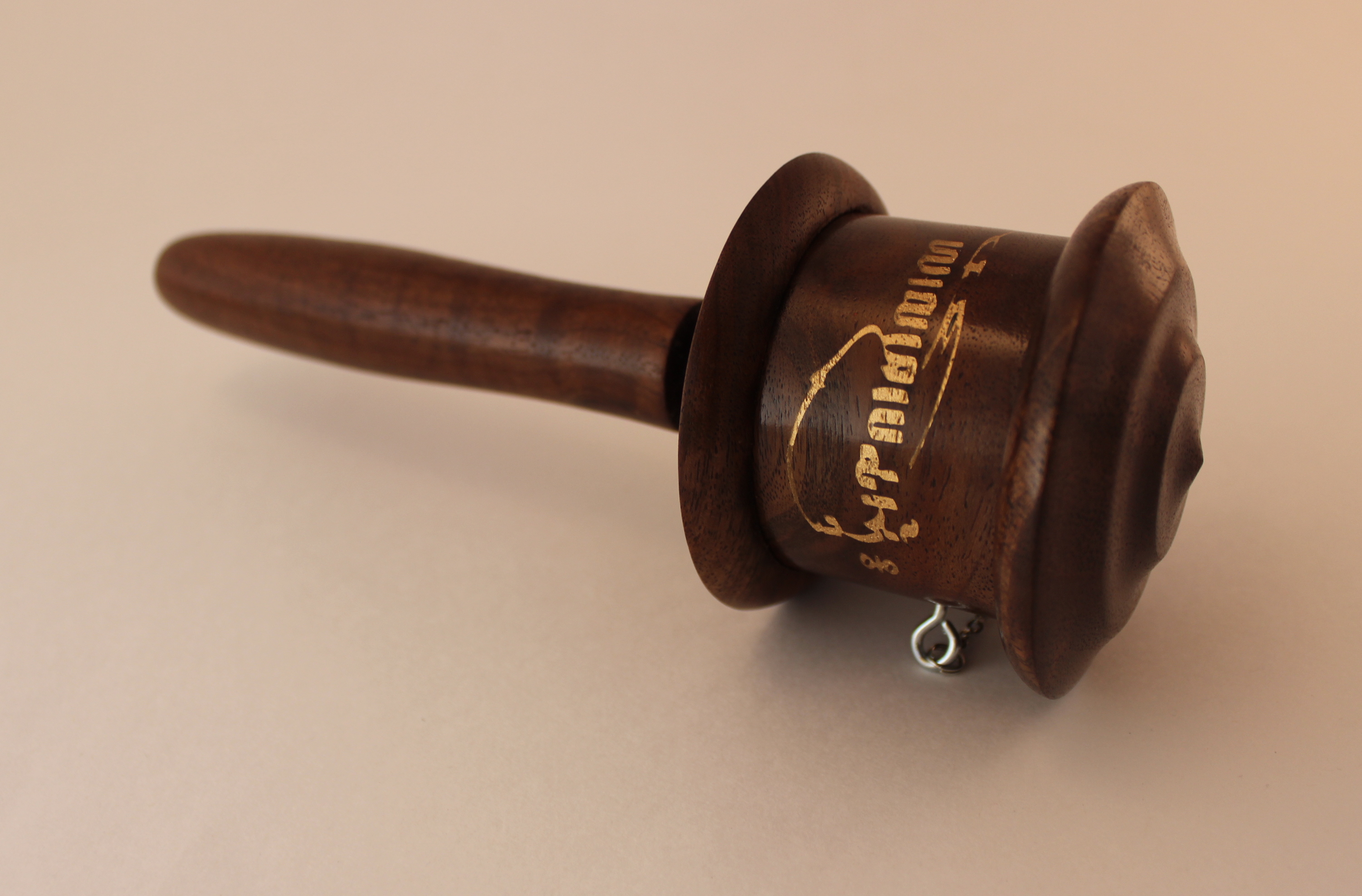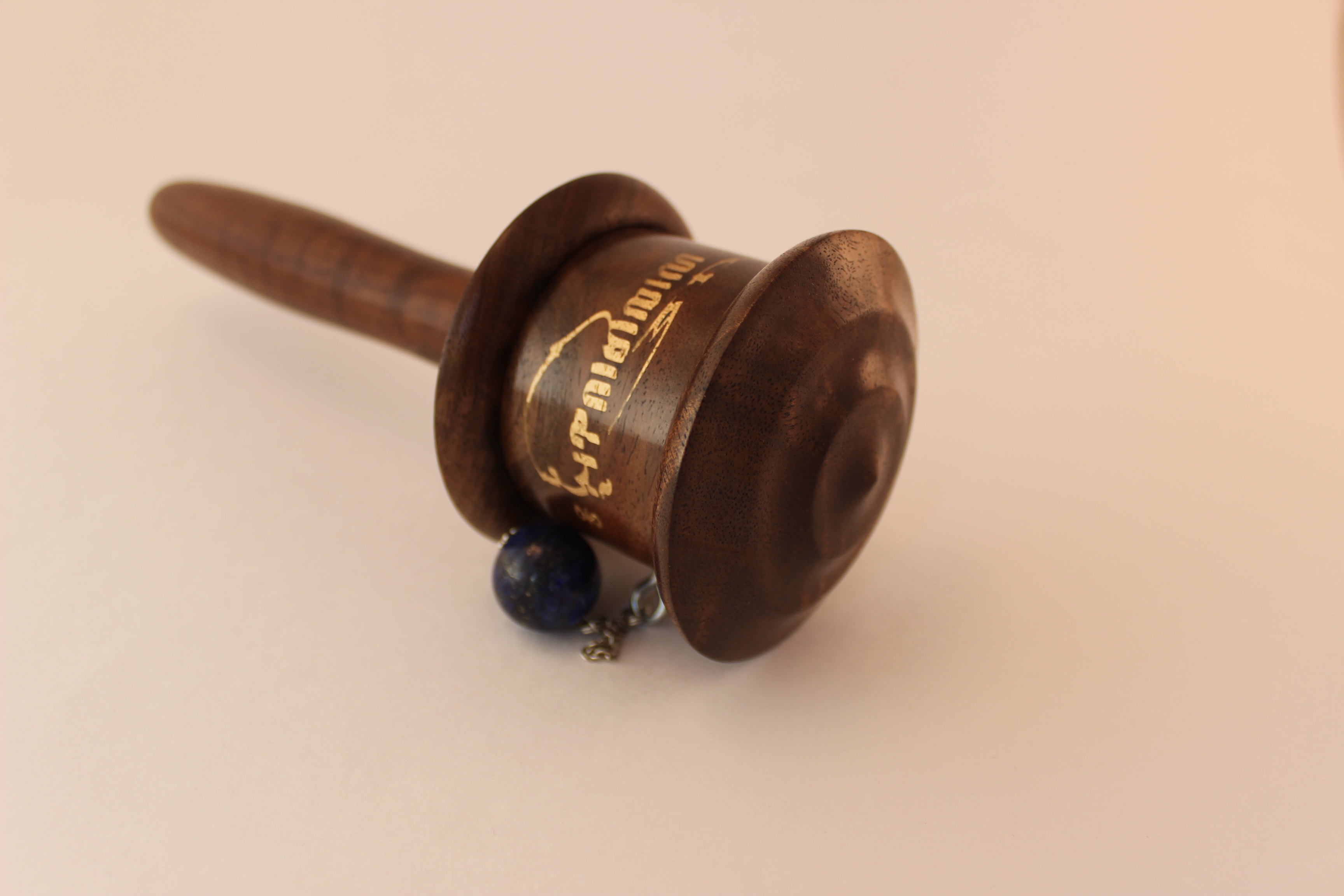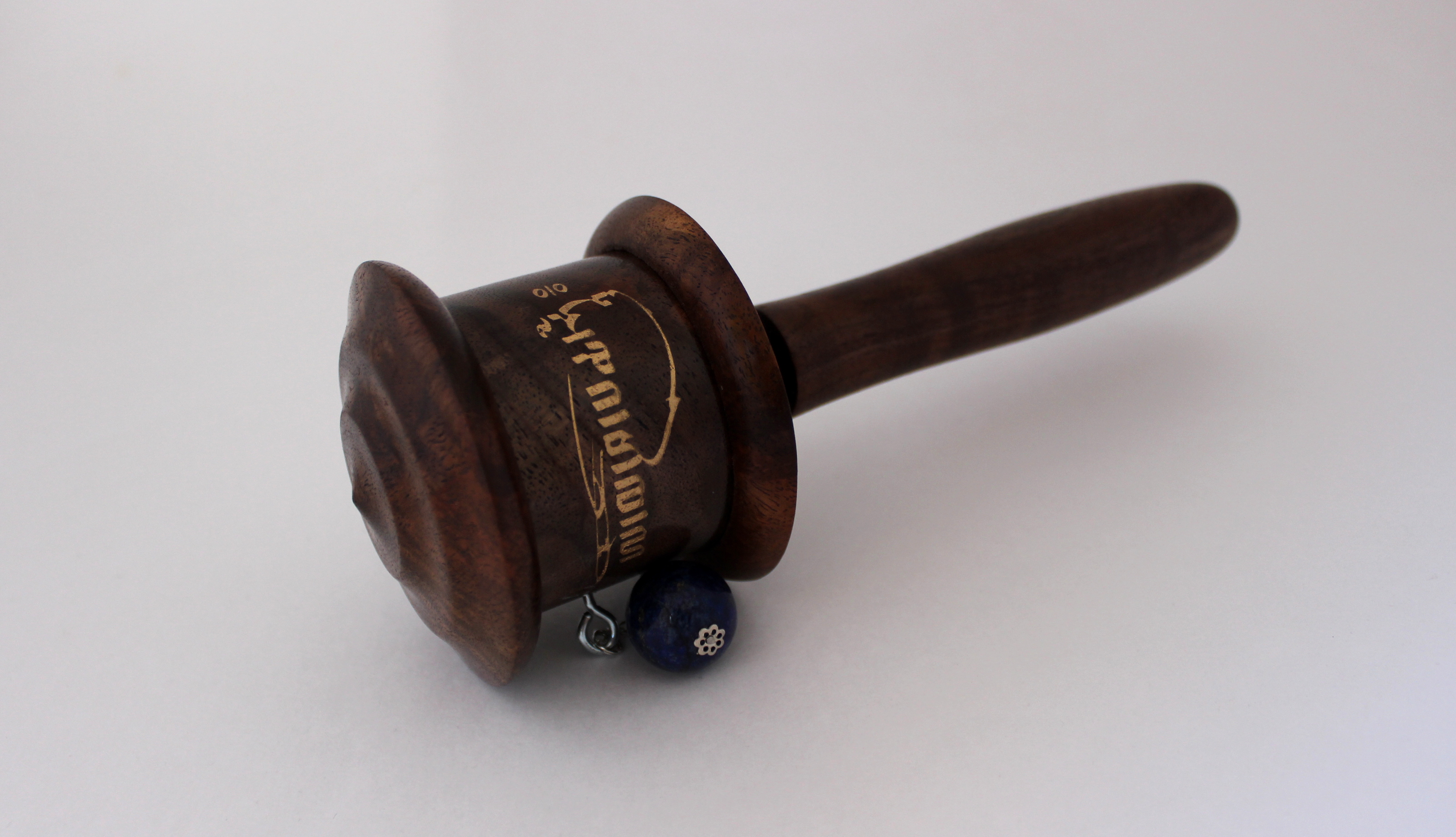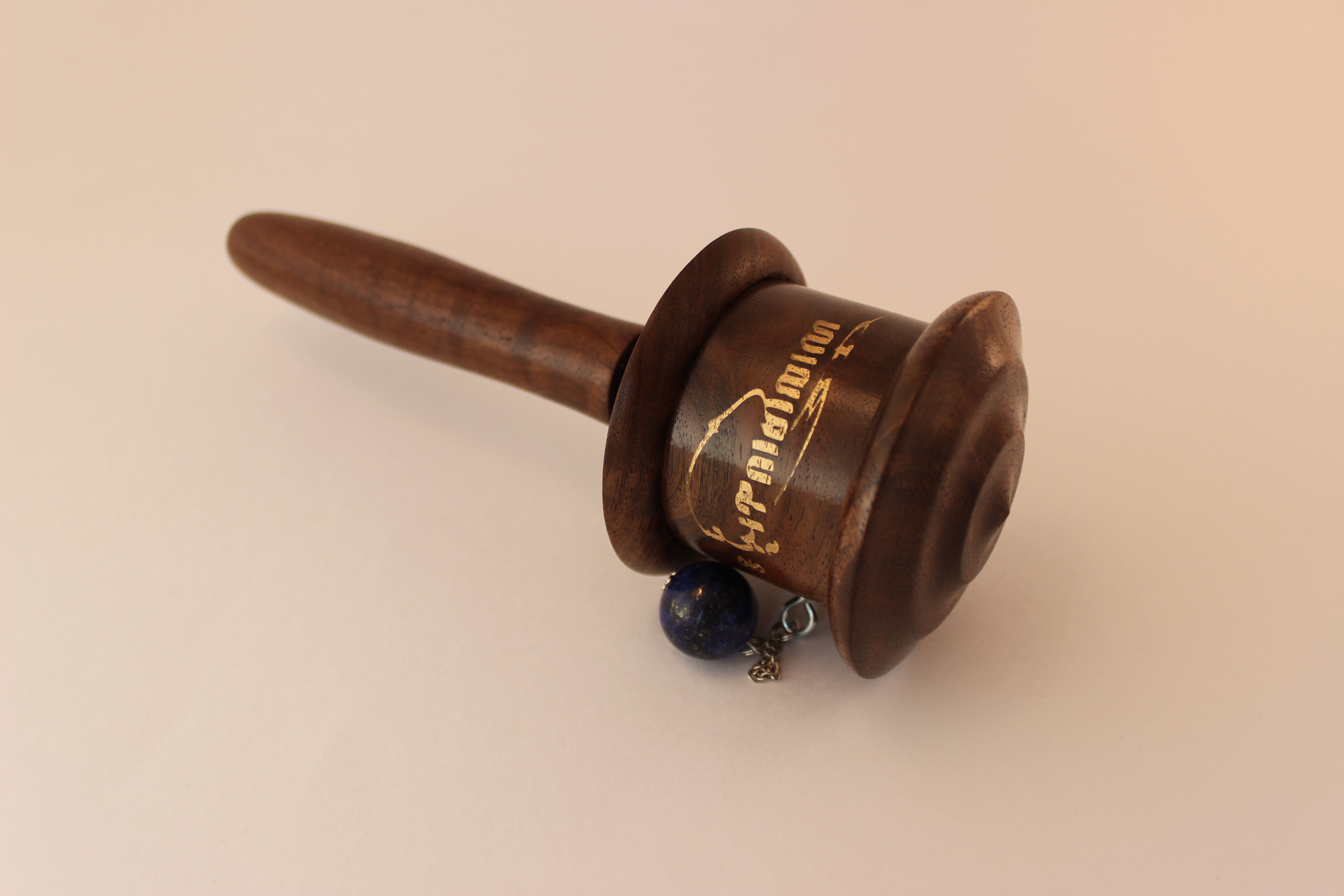This prayer wheel made out of walnut wood sustainably harvested in our home state of Oregon.