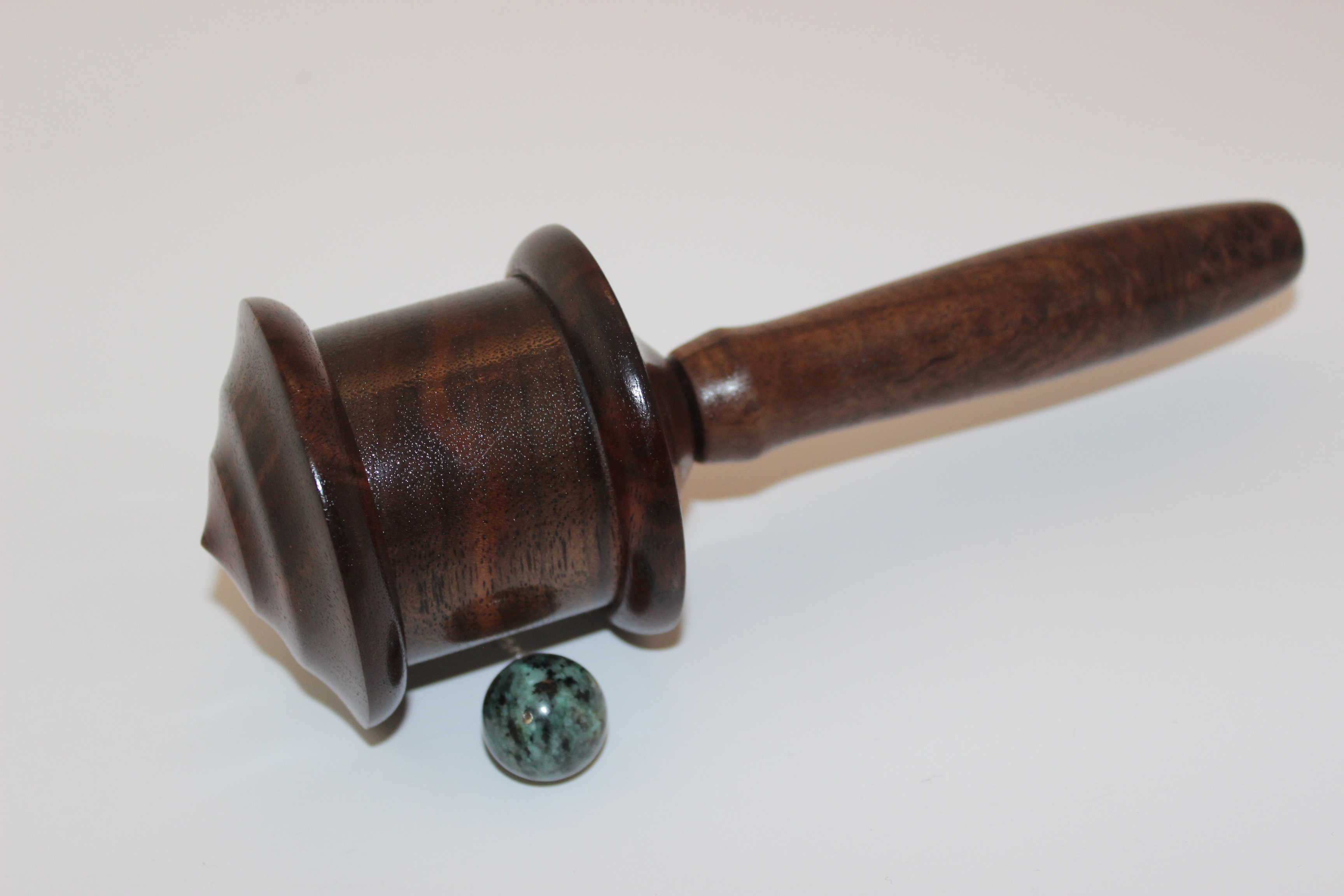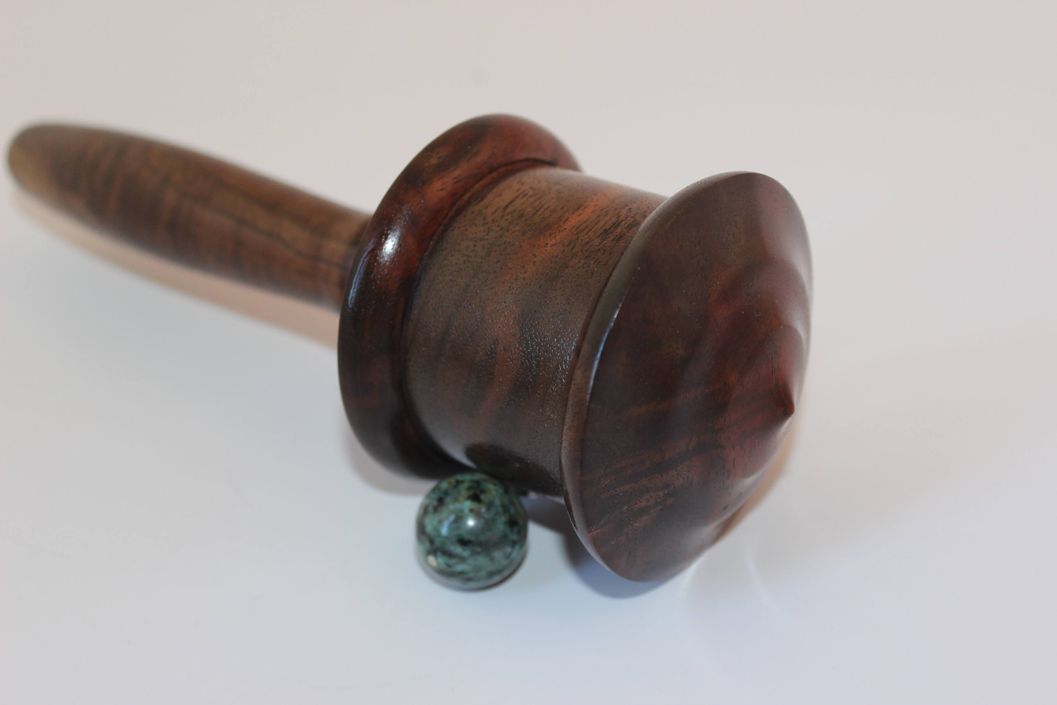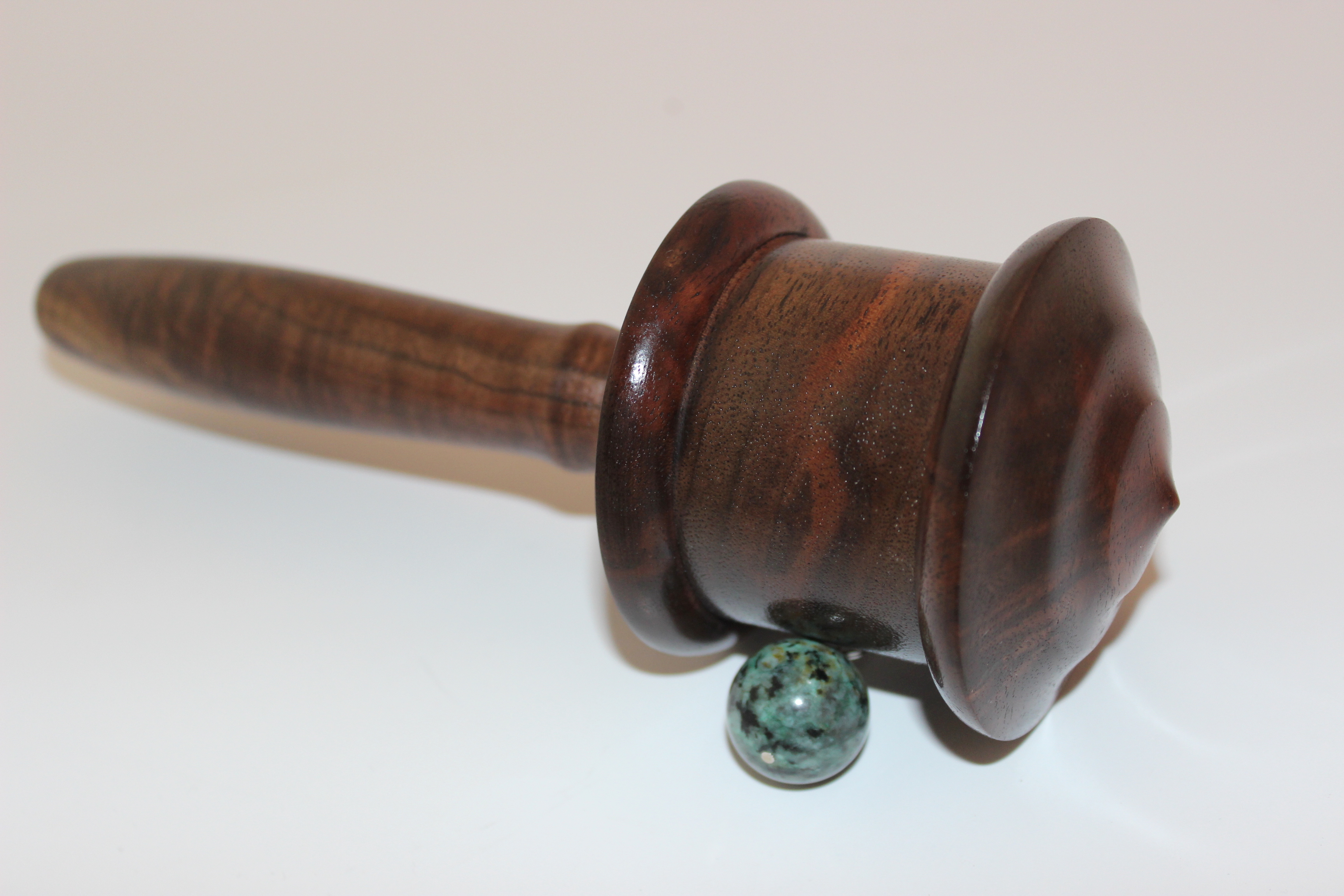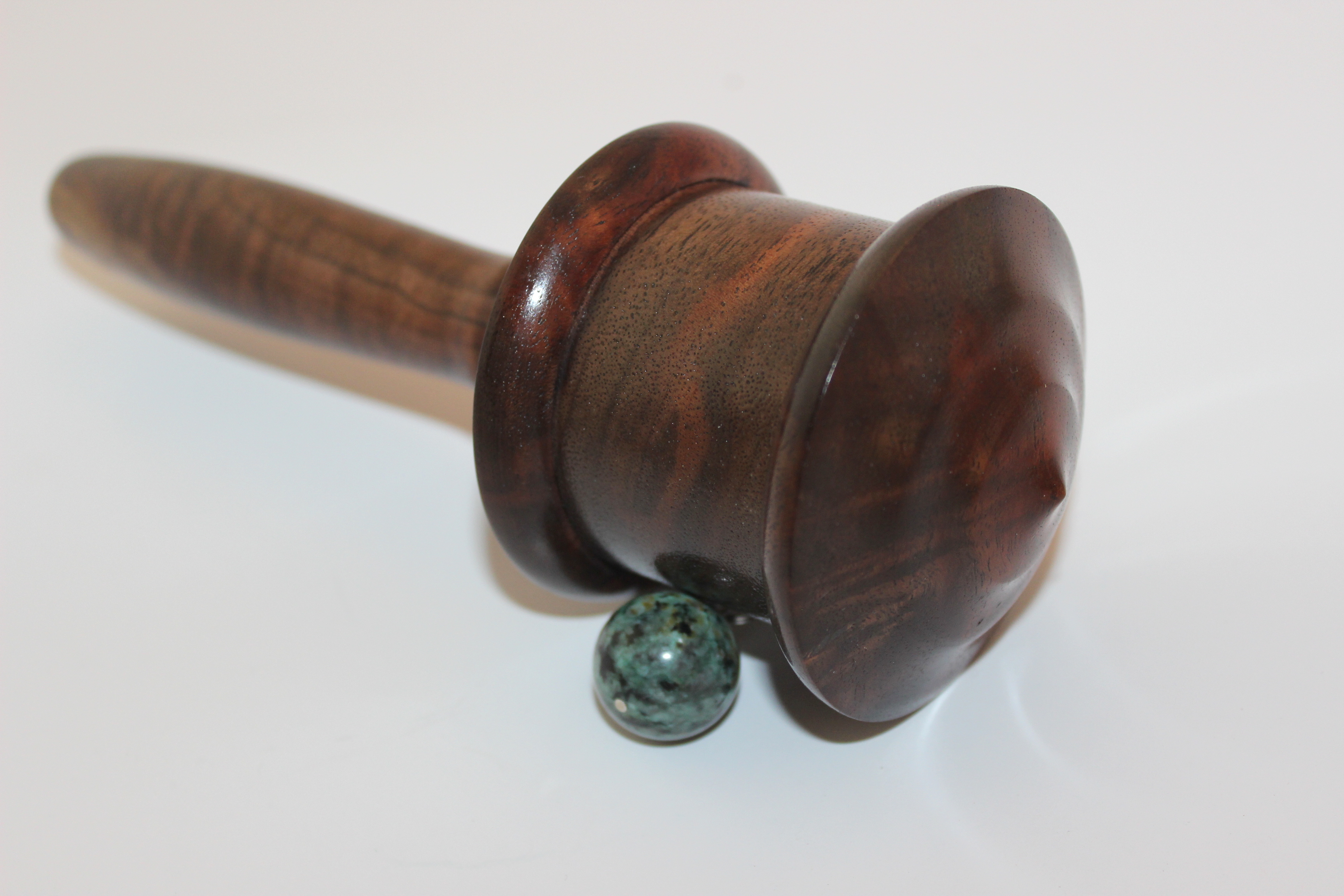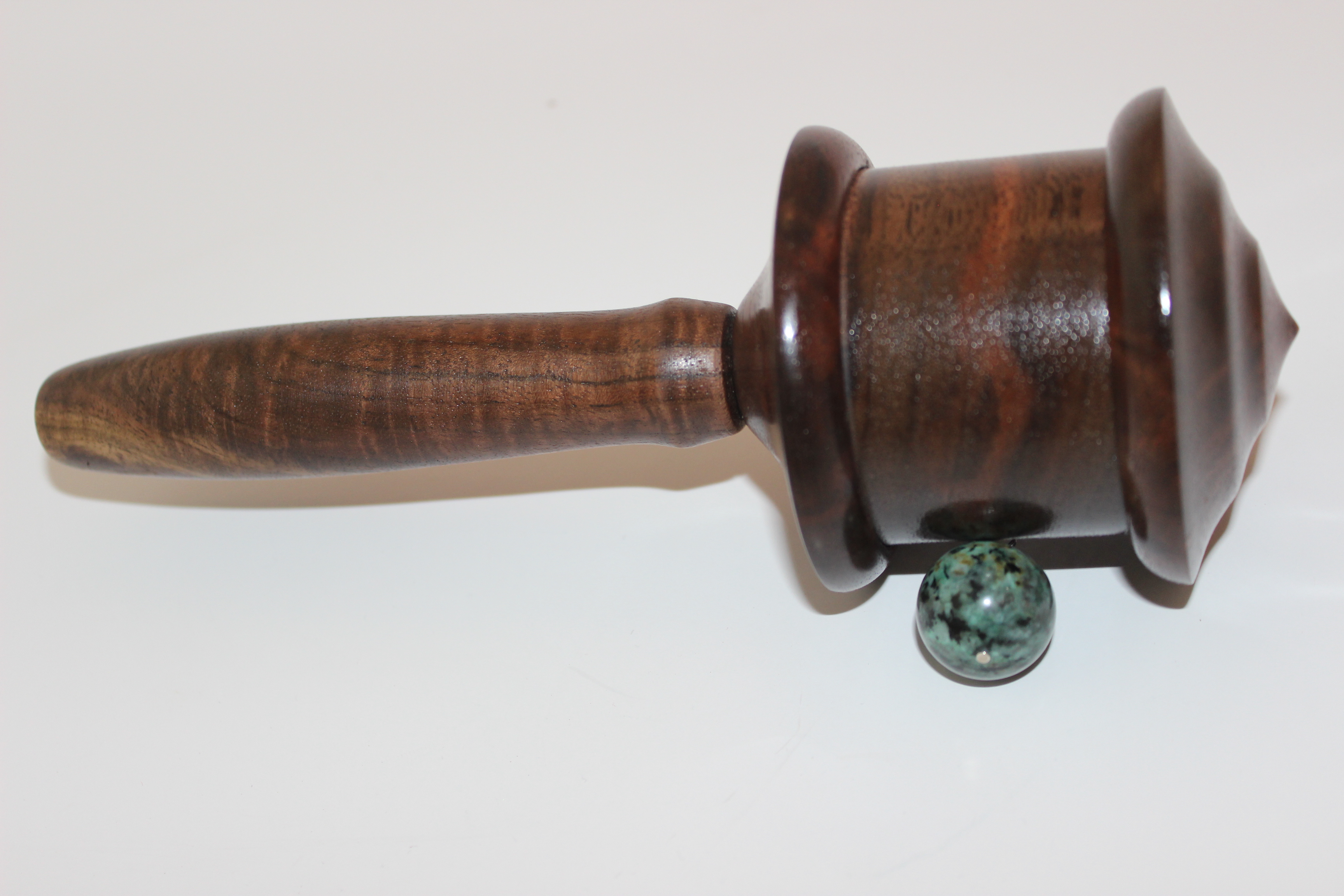 This prayer wheel made out of walnut wood sustainably harvested in our home state of Oregon.