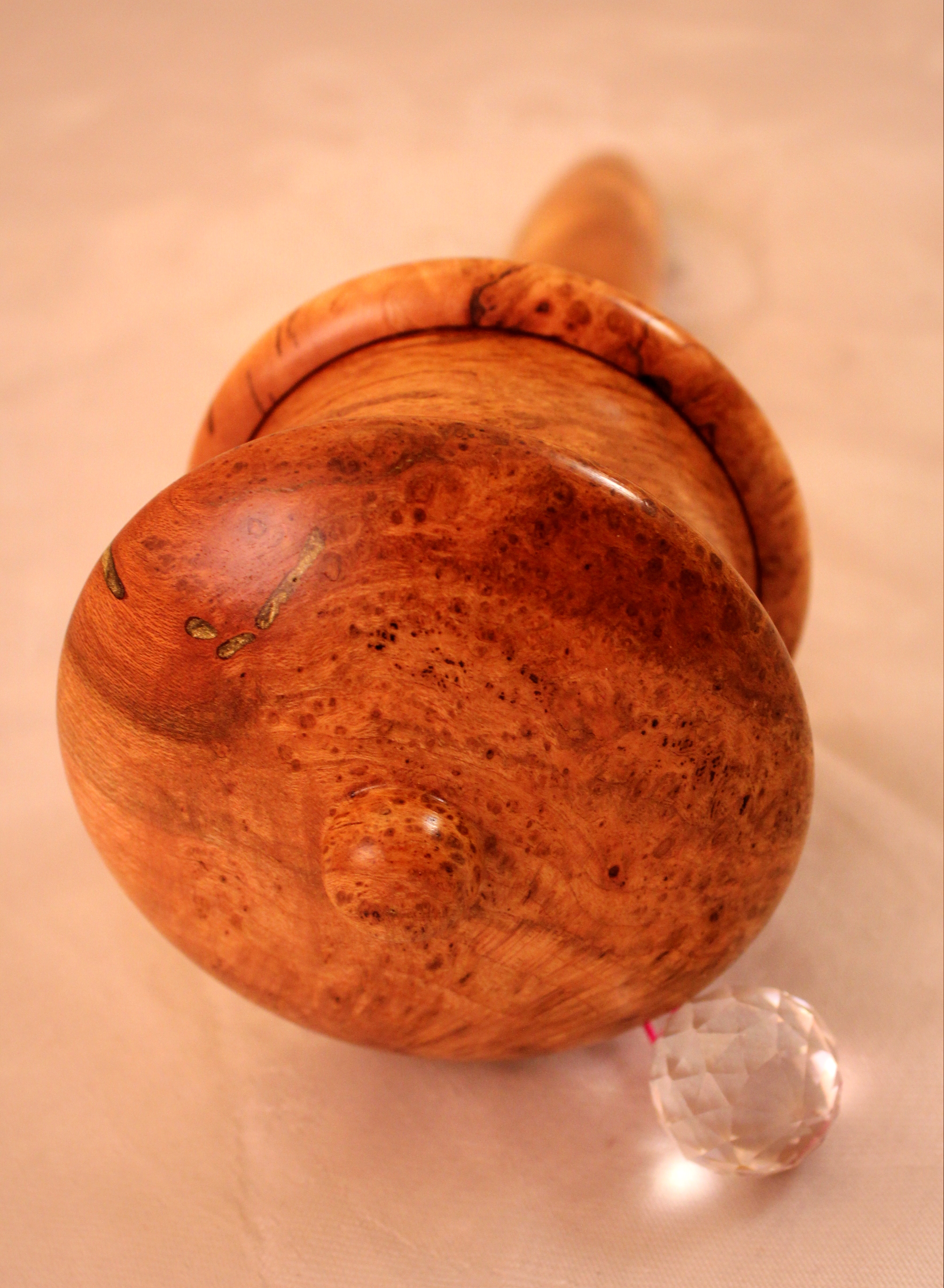 Note: Burlwood is inherently imperfect and almost always has holes, voids and bark inclusions. This imperfection is what gives figured woods their beauty. We fill voids with a black or colored epoxy and stabilize all pieces to be as durable and lasting as any piece of wood. Make sure to look at the pictures and be aware of this before deciding that a burlwood prayer wheel is right for you.