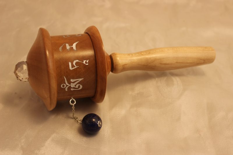 All our prayer wheels are finished with a non toxic all natural wood finish and produced with 100% renewable electricity.