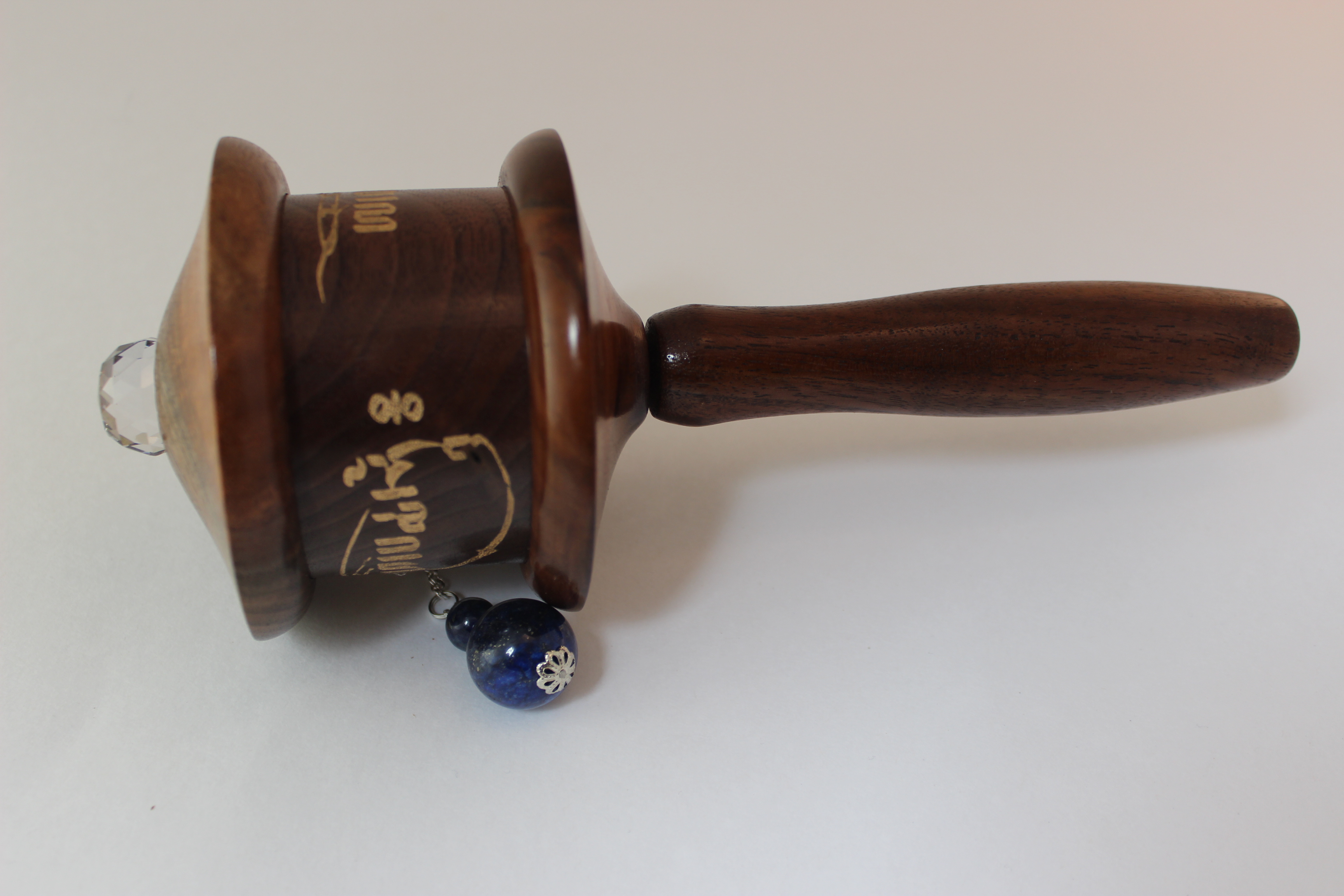 This standard size prayer wheel is made out of beautifully patterned walnut hardwood, sustainably harvested in our home state of Oregon.