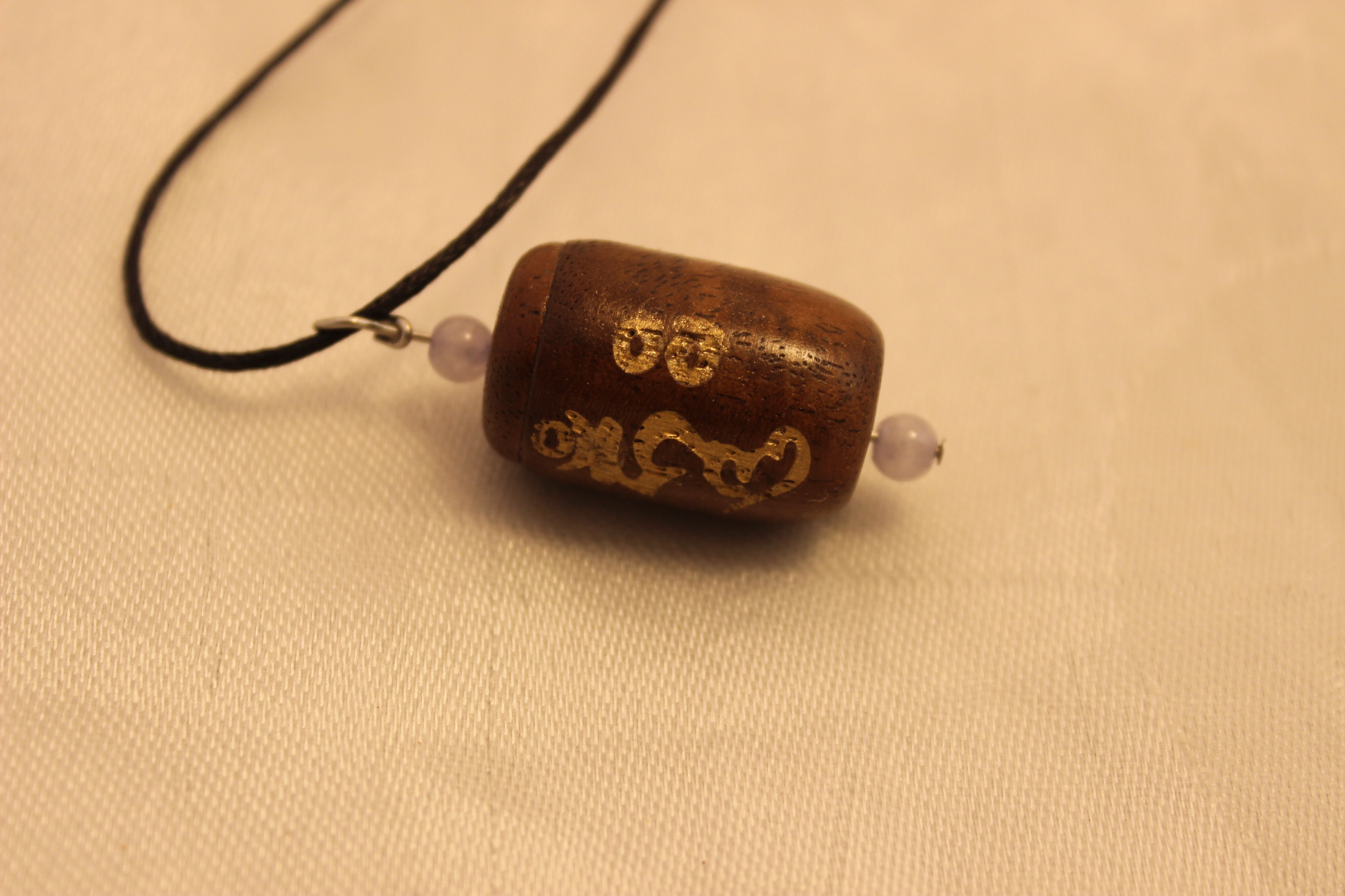 This wooden pendant prayer wheel is approximately 1 inch high and 3/4 of an inch wide. It is made from sustainably harvested walnut hardwood. It contains 65.000 Guru Rinpoche mantras printed on microfilm. “OM VAJRA GURU PADMA SIDDHI HUM”