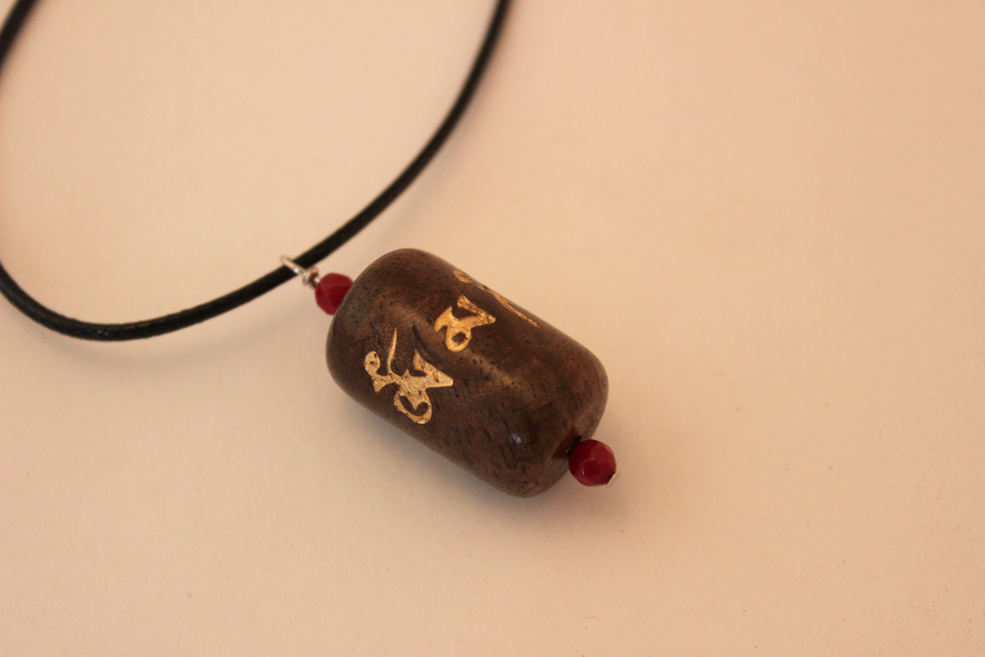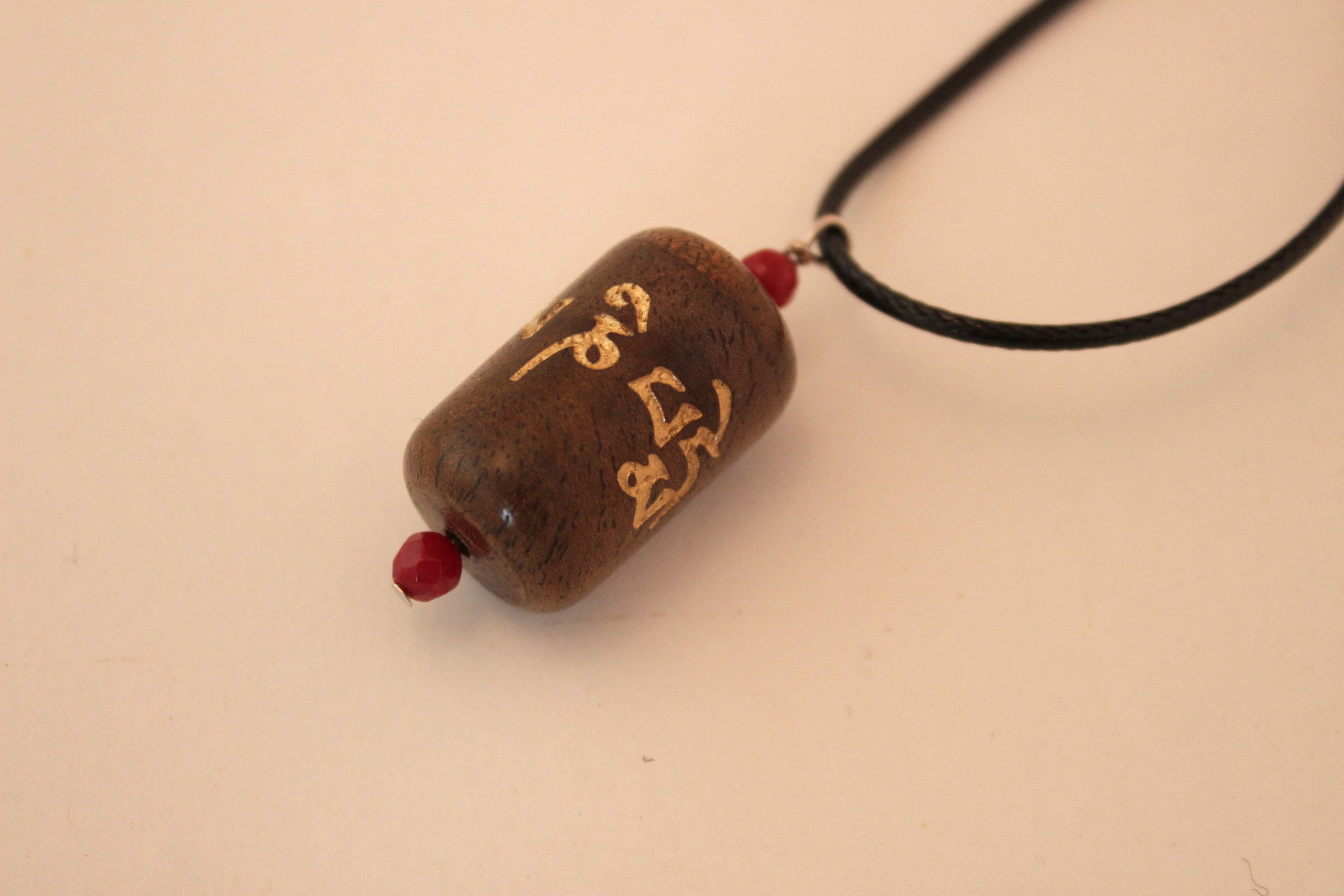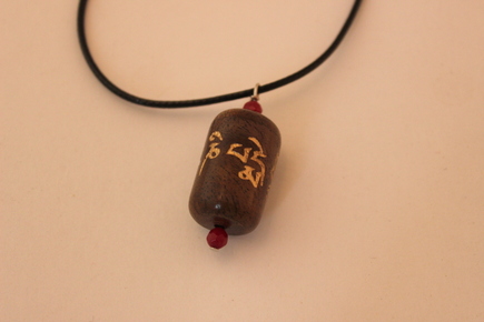 This wooden pendant prayer wheel is approximately 1 inch high and 3/4 of an inch wide. It is made from beautiful walnut wood. All wood is sustainably harvested in our home state Oregon. It features ruby beads.
